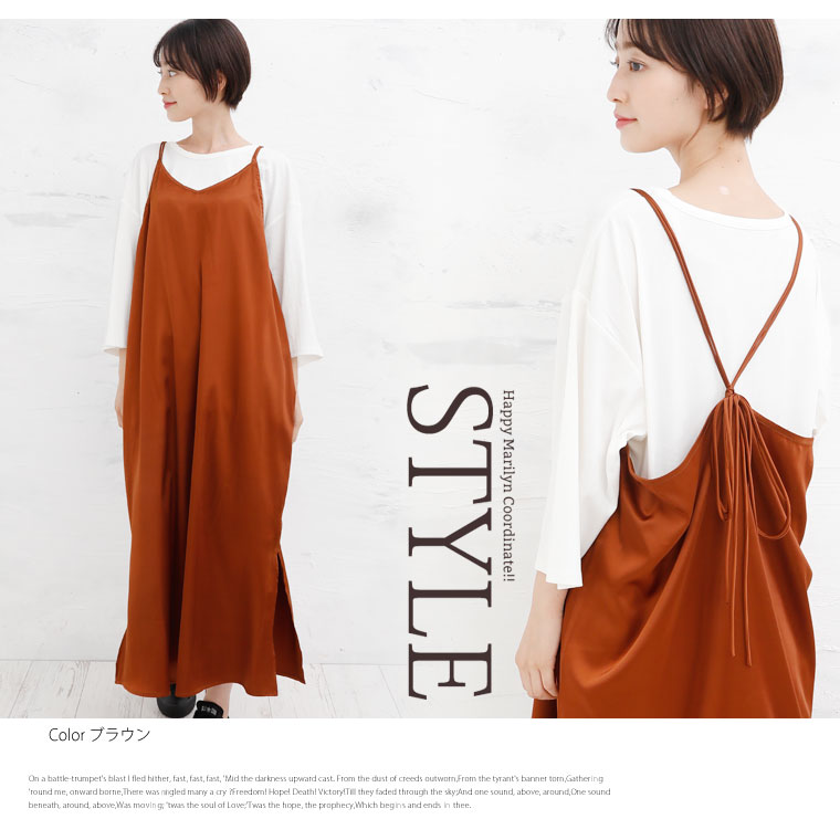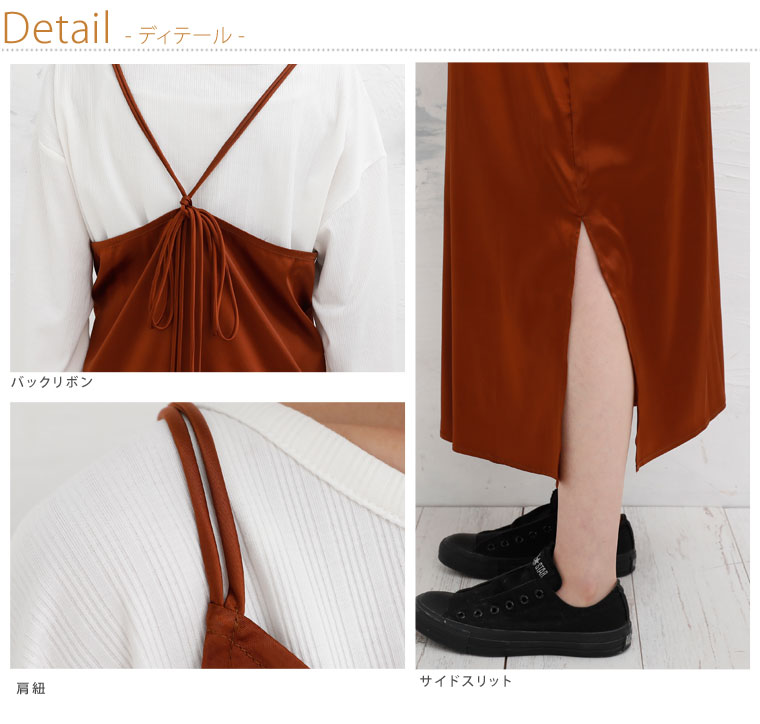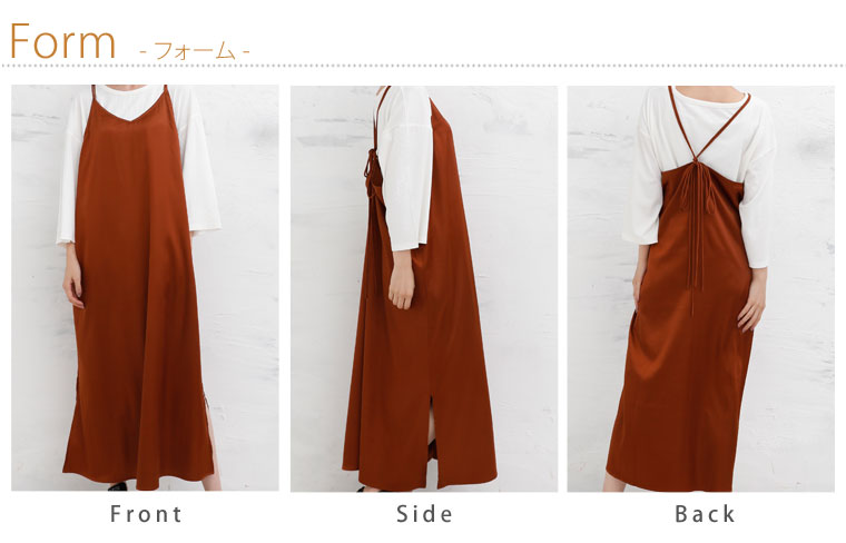 大人上品な無地サテン ダブルストラップキャミワンピース