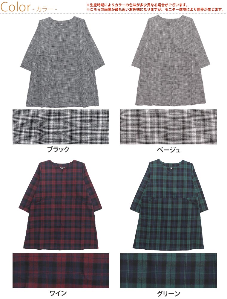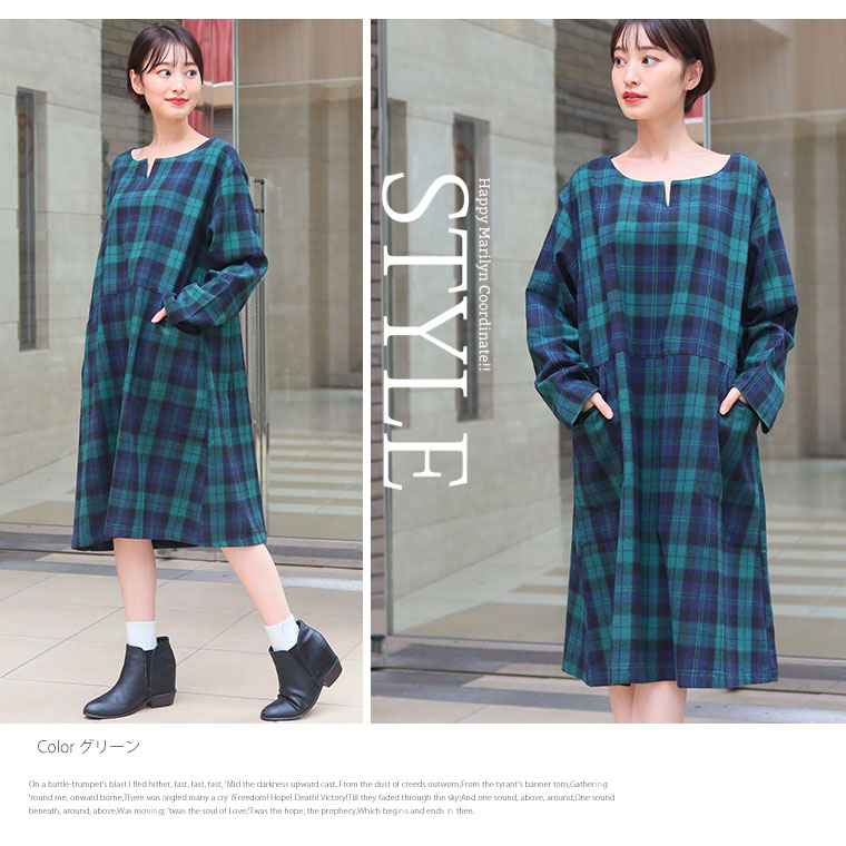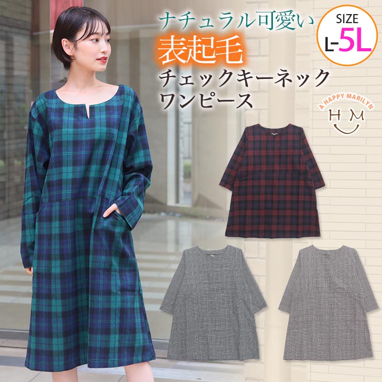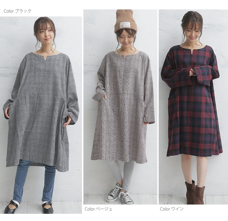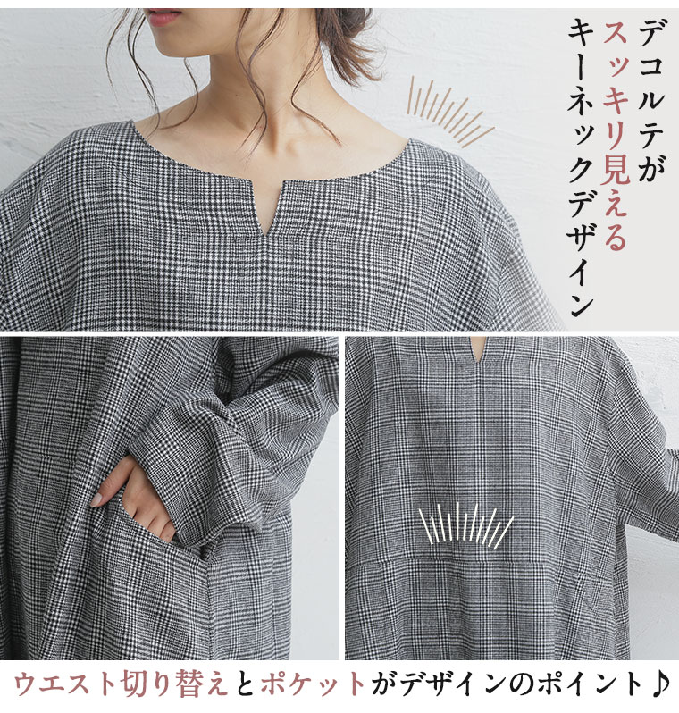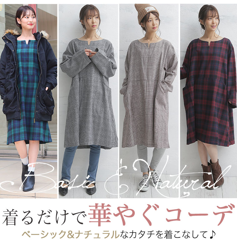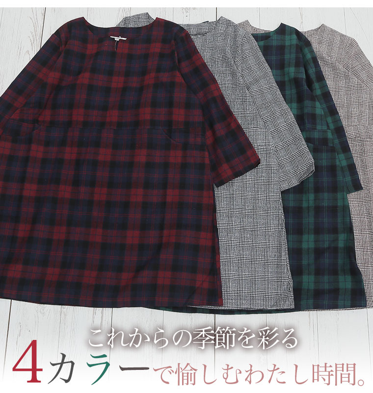ナチュラルにかわいい表起毛チェックキーネックワンピース