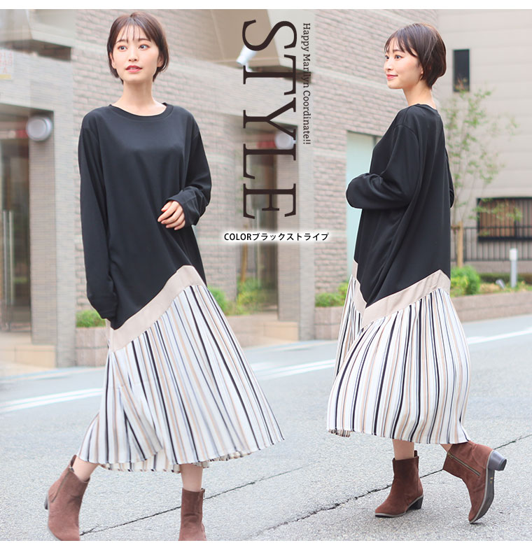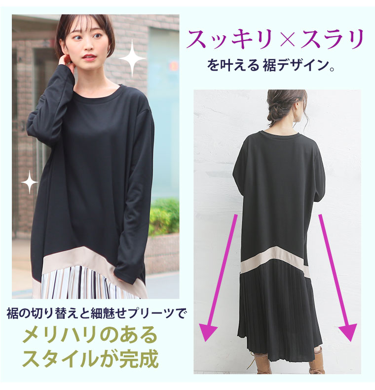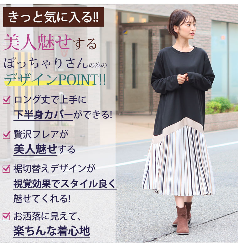 ワンピ デザインワンピ LL 3L 4L 5L 6L 秋 秋物 秋冬 ぽっちゃり ゆったり かわいい おしゃれ カジュアル ナチュラル きれいめ 上品 ガーリー TRポンチ 裾切替 ワンピース