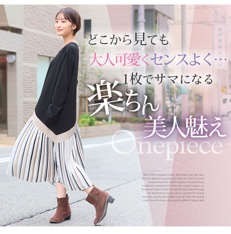 揺れるフレアがまるっと体型カバーしてくれる切替ワンピース