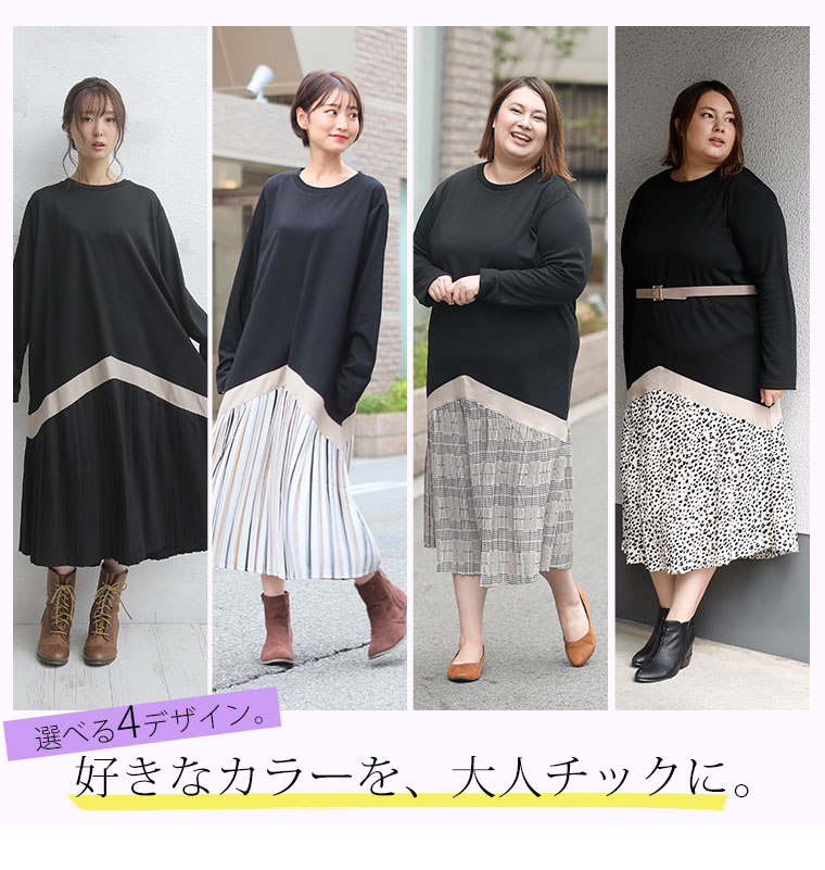 4. 大きいサイズ TRポンチ 裾切替 ワンピース