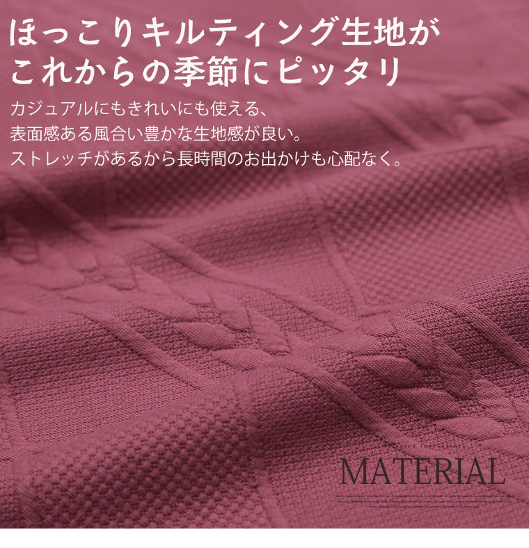 Aラインシルエット&柔らかキルティング生地でオシャレも着心地も叶える。