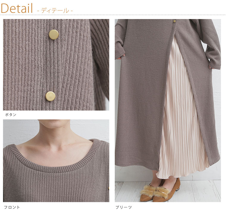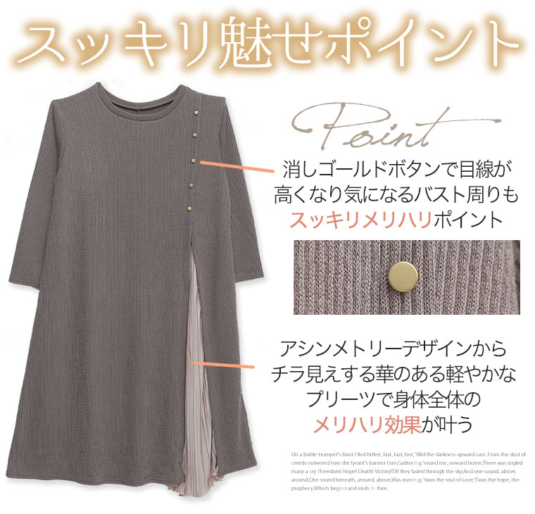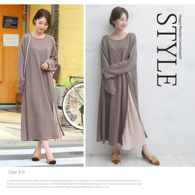 リブニットソー×プリーツがスッキリ細魅せ!デザインワンピースで決まるコーディネート