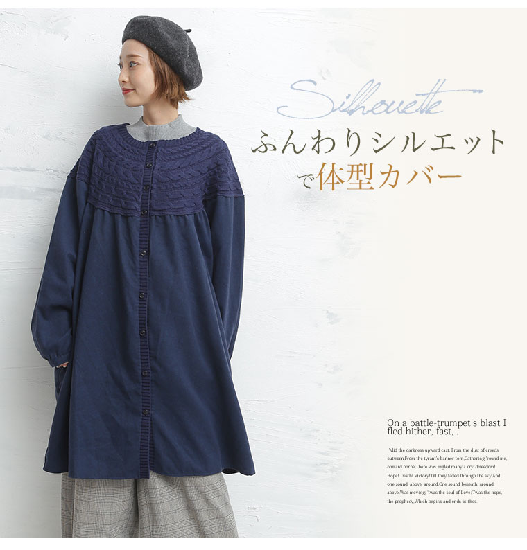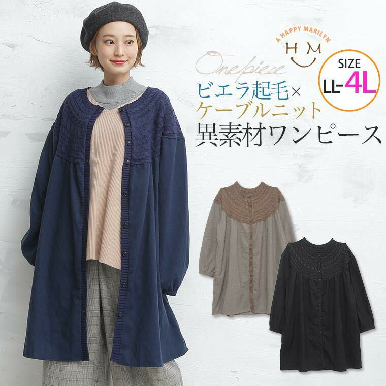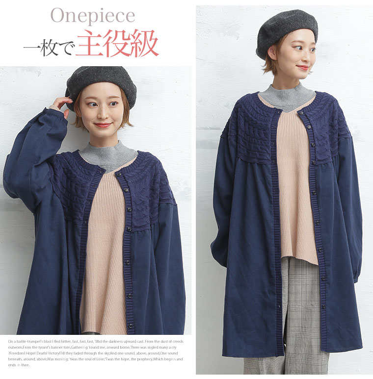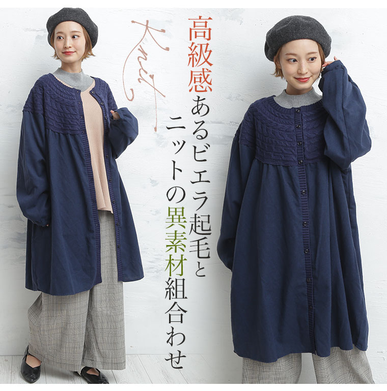 高級感あるビエラ起毛とニットの異素材ワンピース