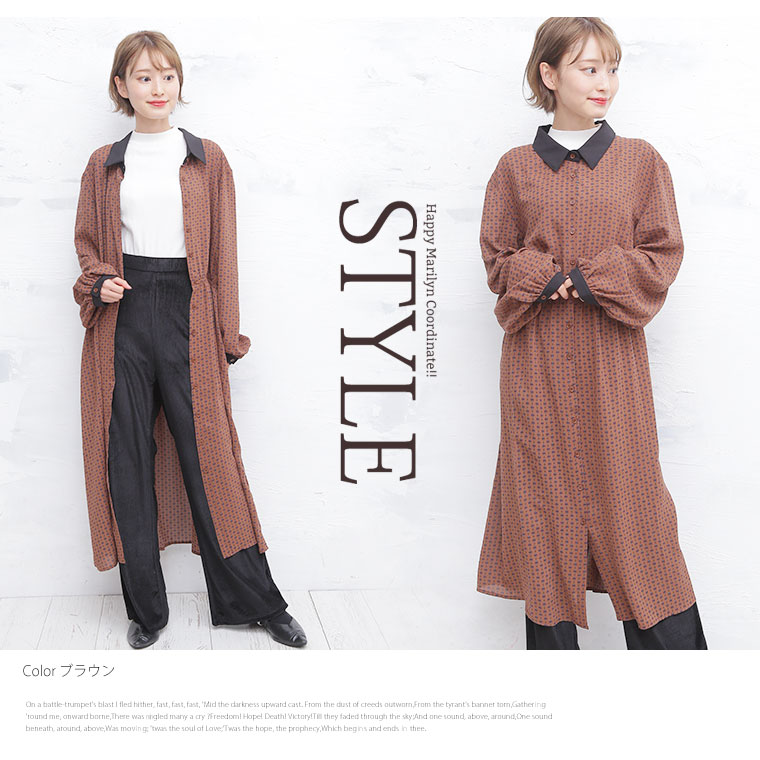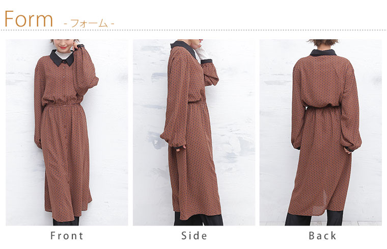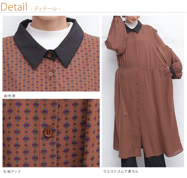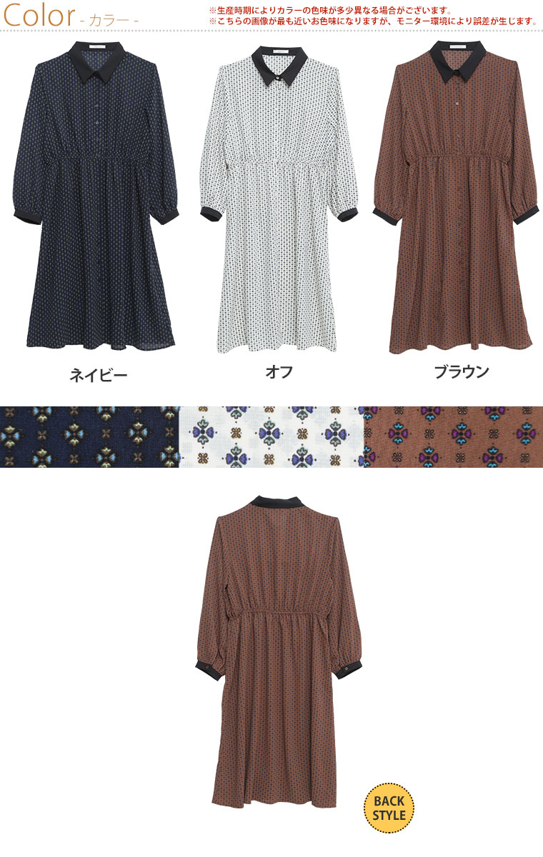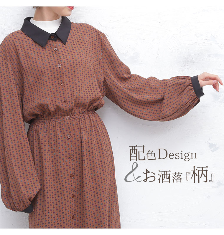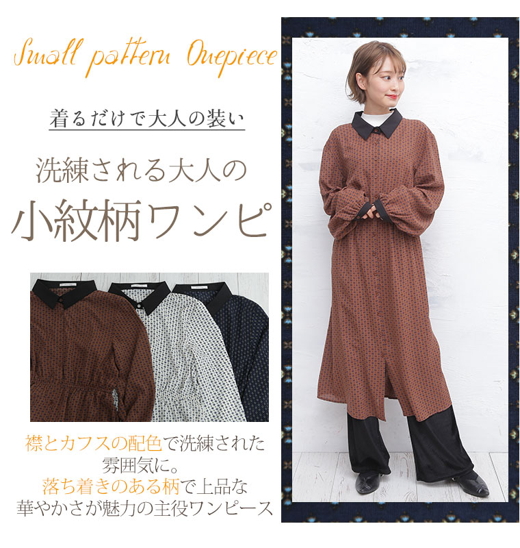 カフスが上品な大人の小紋柄ワンピース