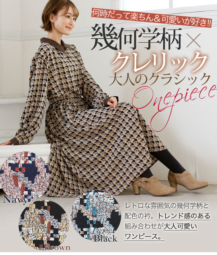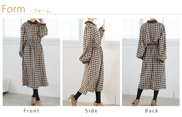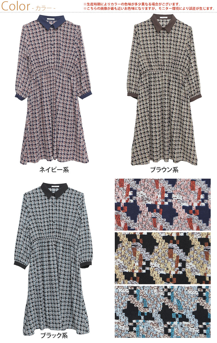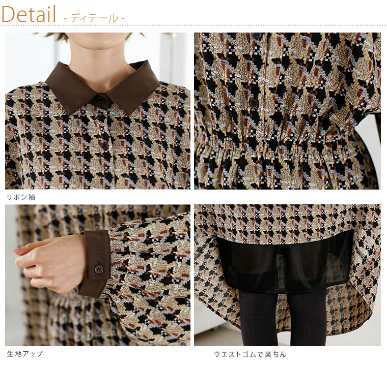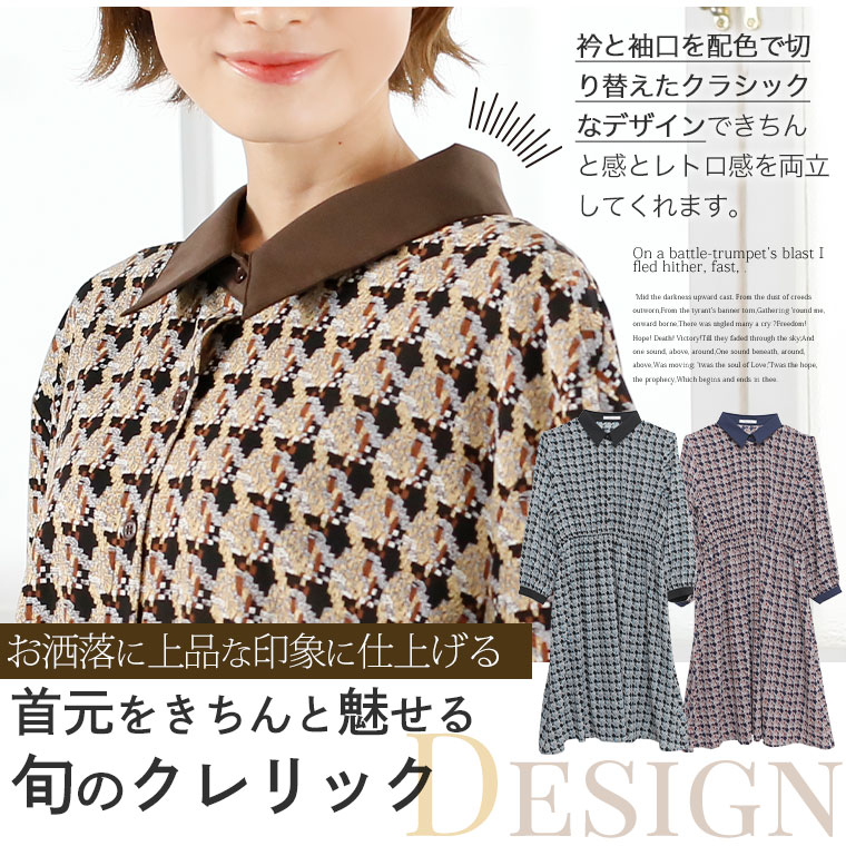 上品クラシカル 大人女子のためのクレリック千鳥柄ワンピース