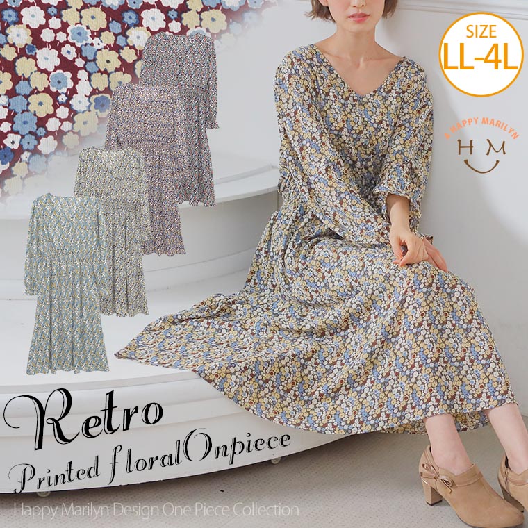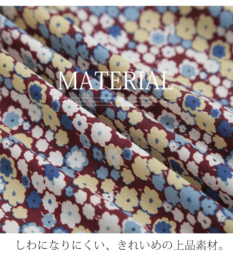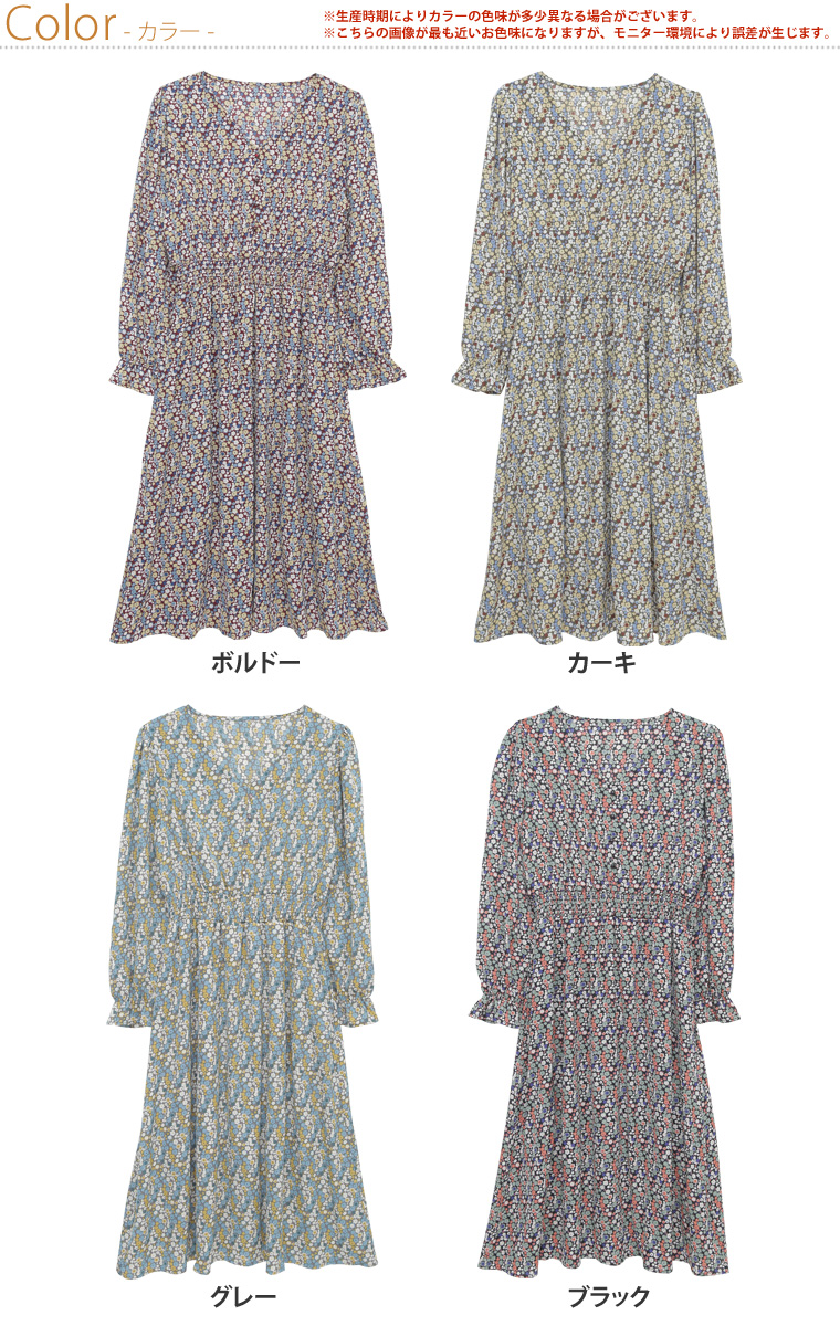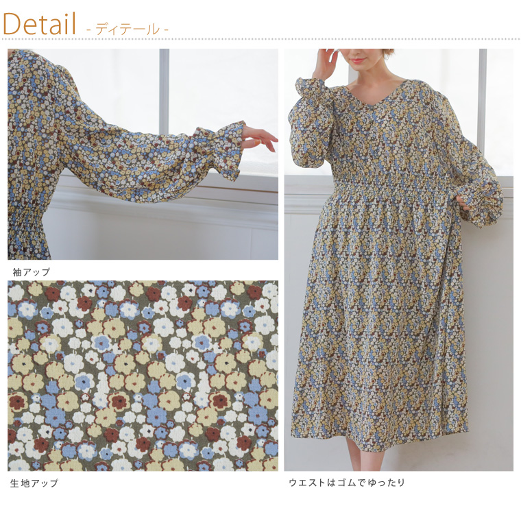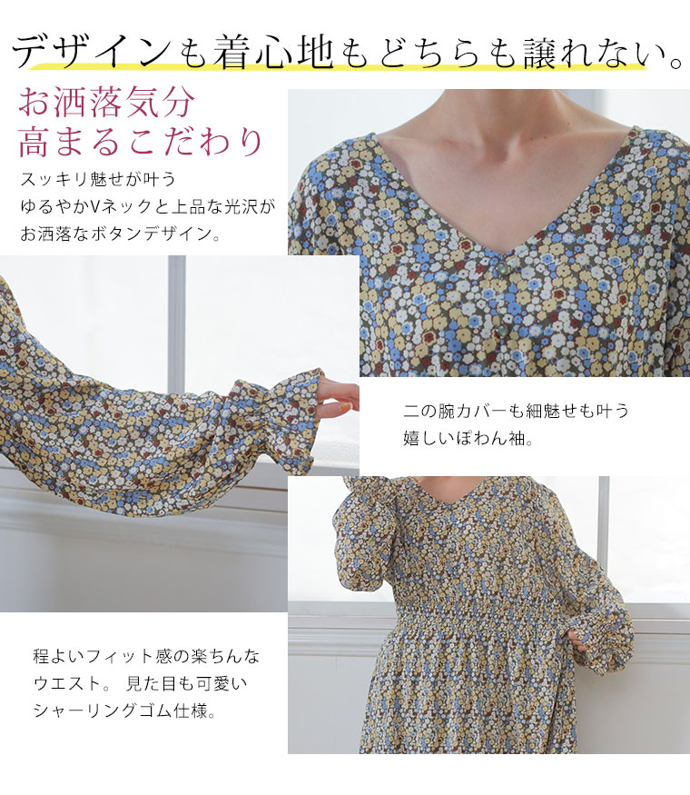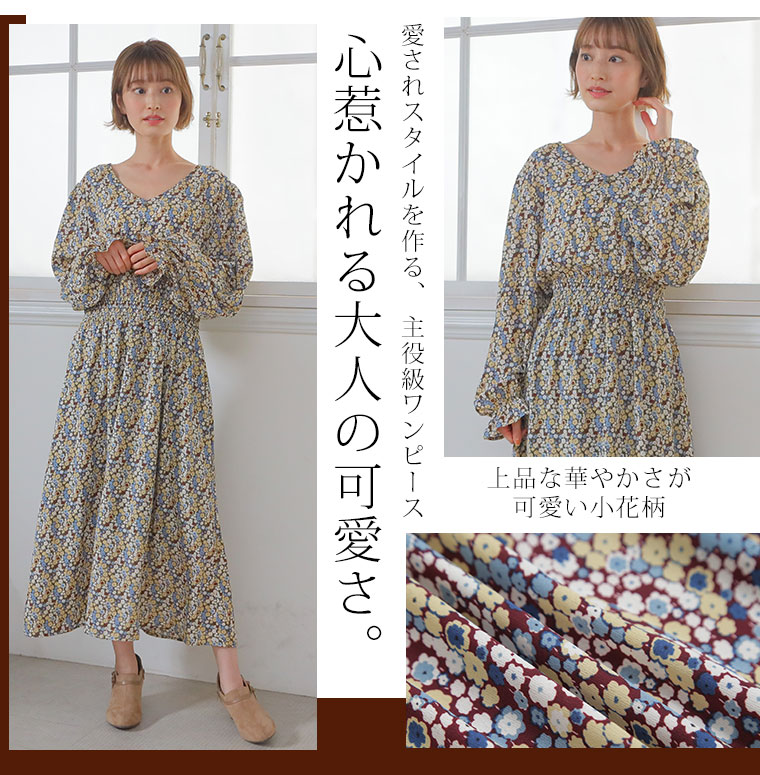 大人可愛い花柄が魅力。上品なウエストゴムシャーリングワンピース