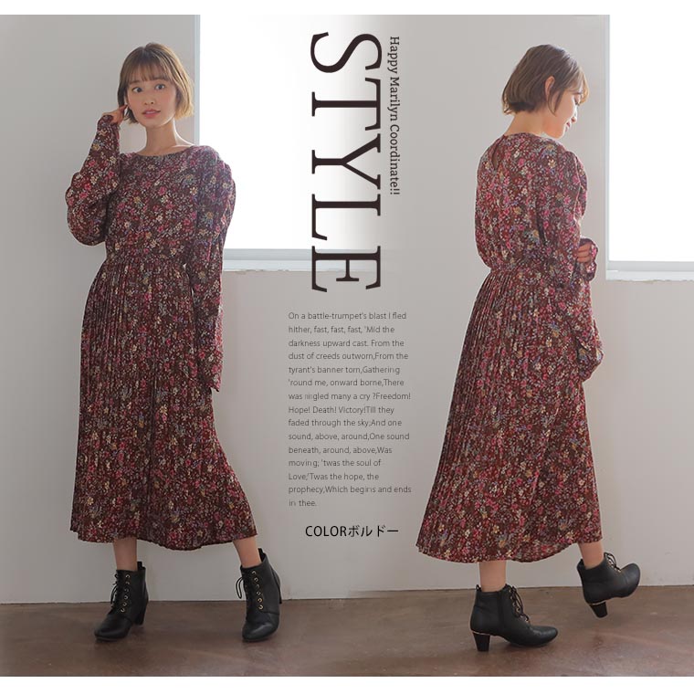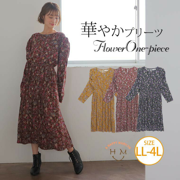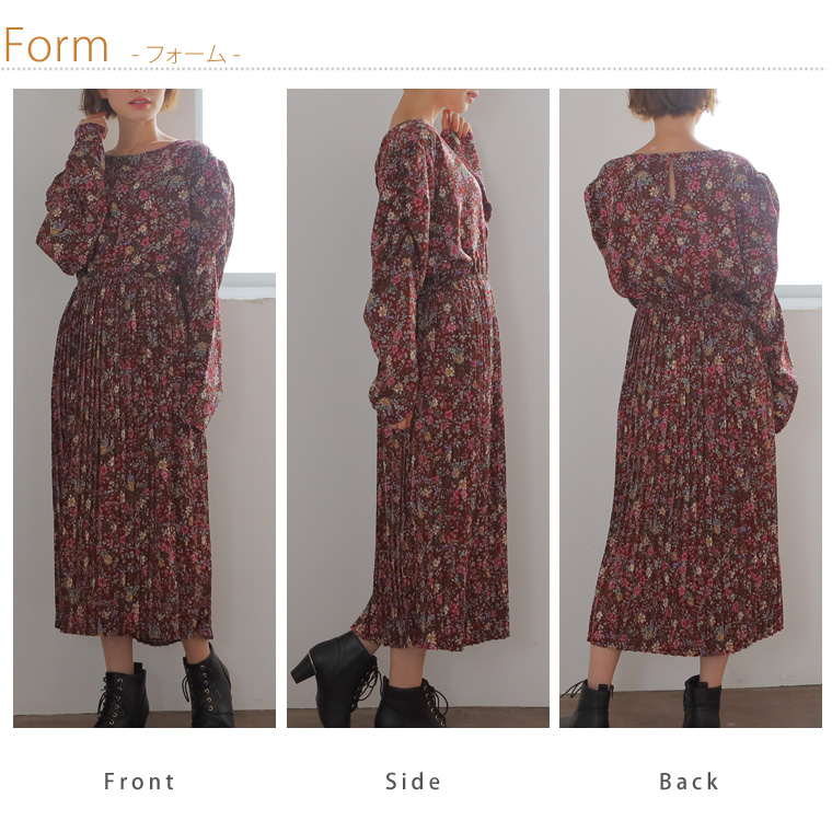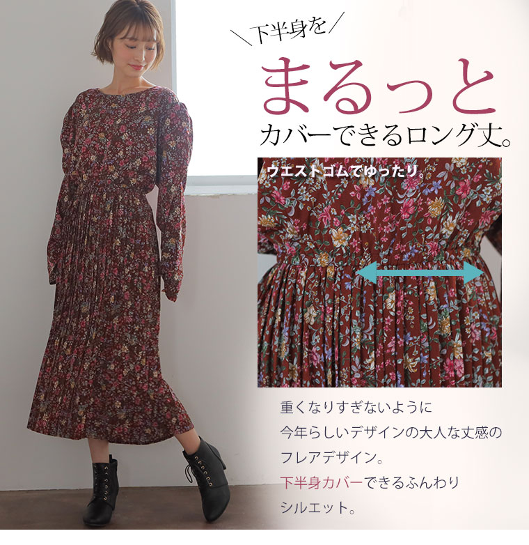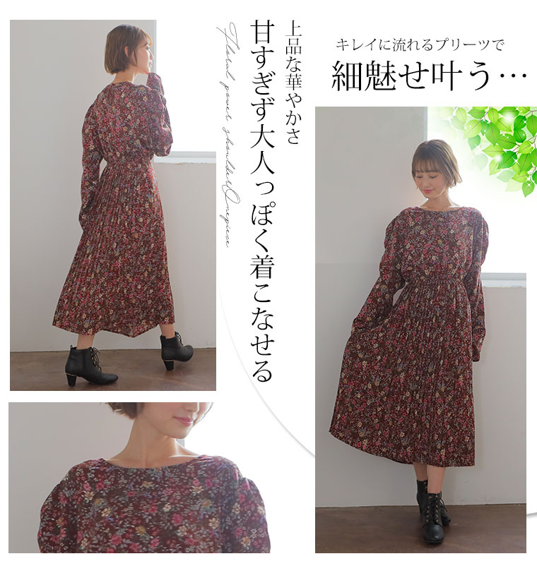 花柄の上品さと可愛さが魅力的なプリーツワンピース