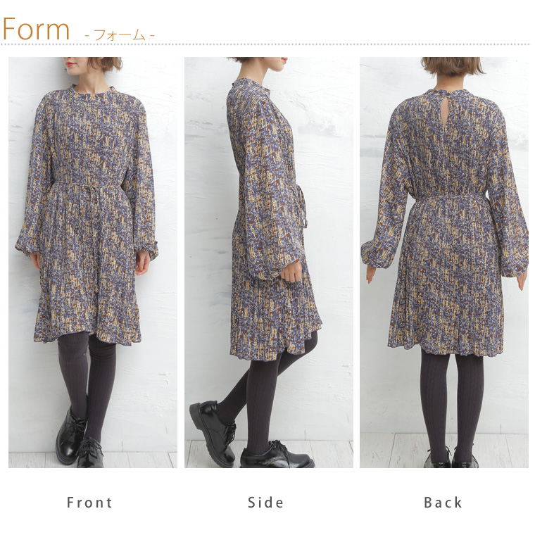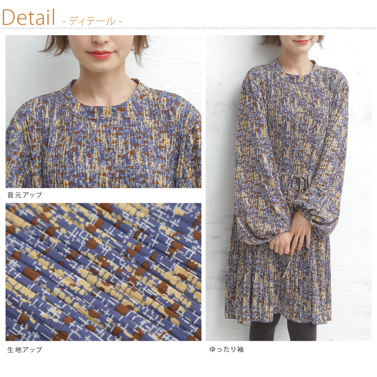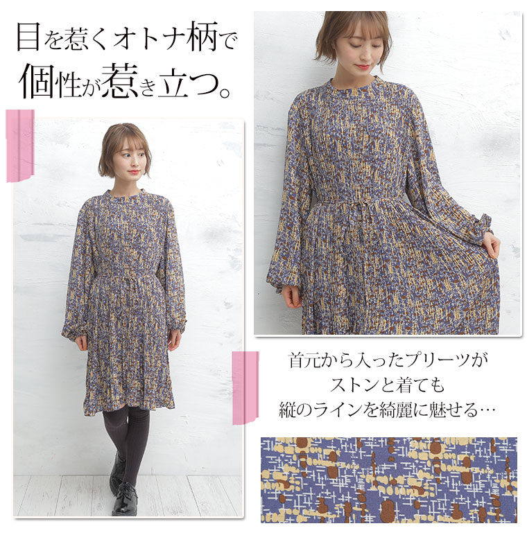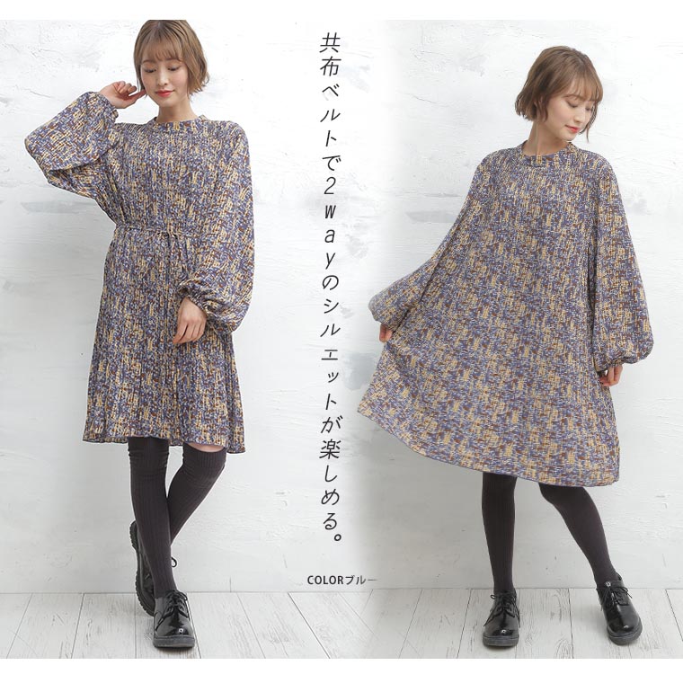 共布ベルトで2wayのシルエットが楽しめる、ペイント柄ワンピース。