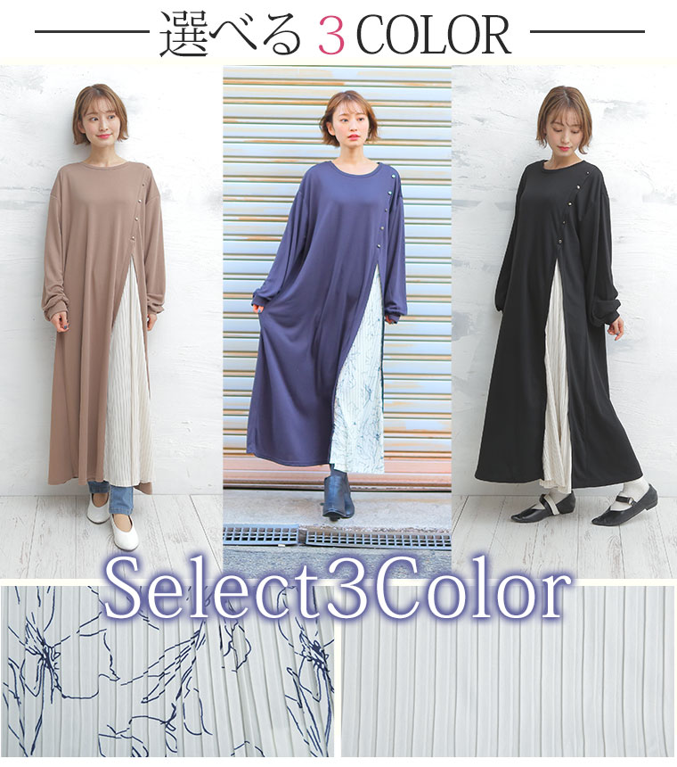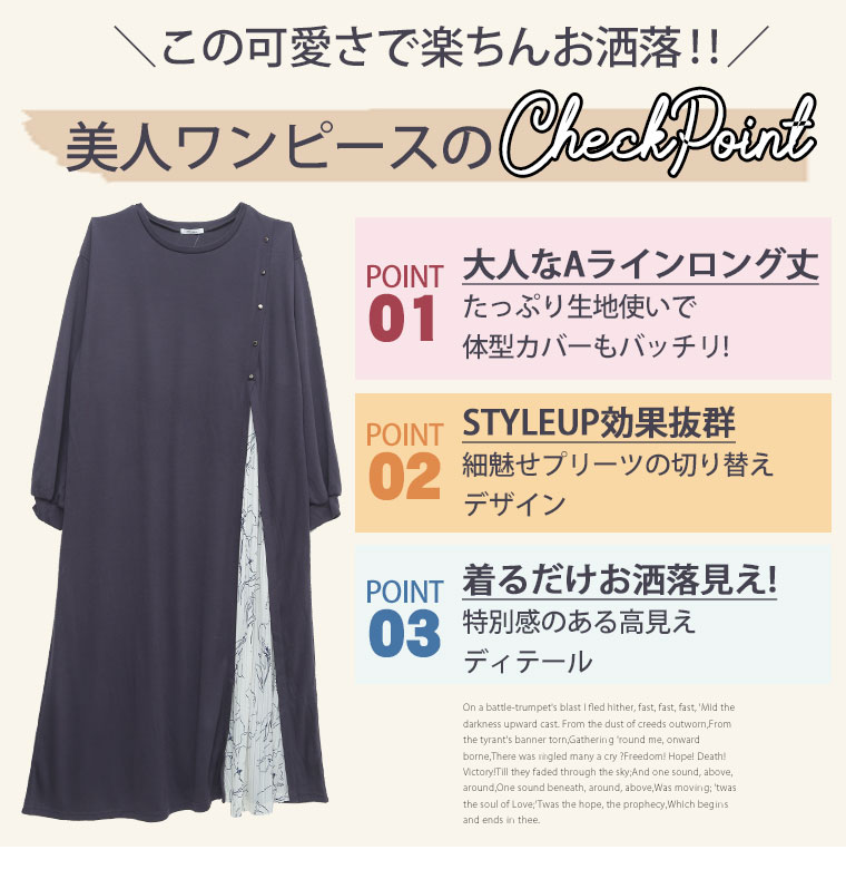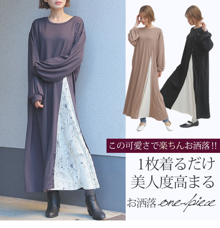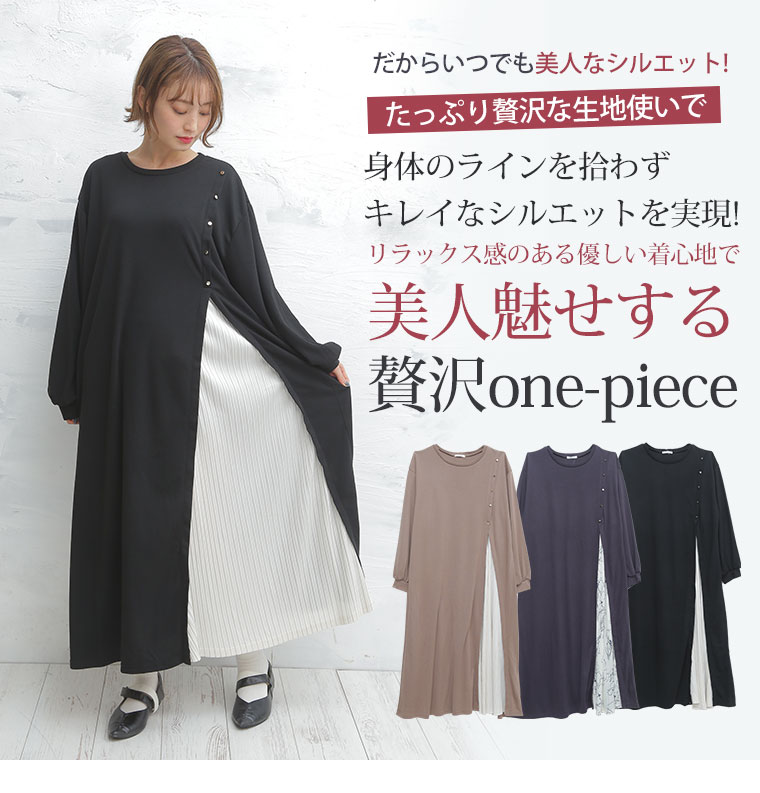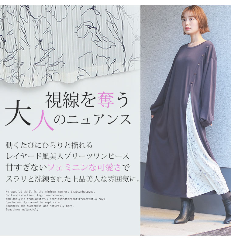動くたびにひらりと揺れるレイヤード風美人プリーツワンピース