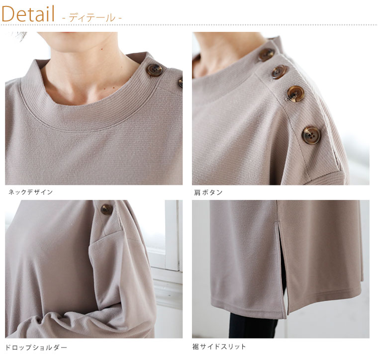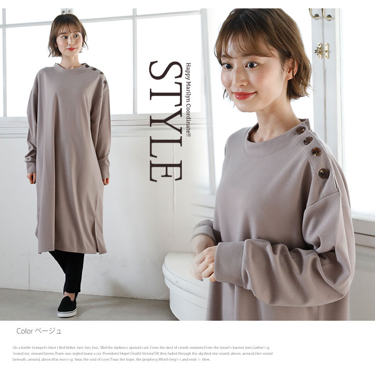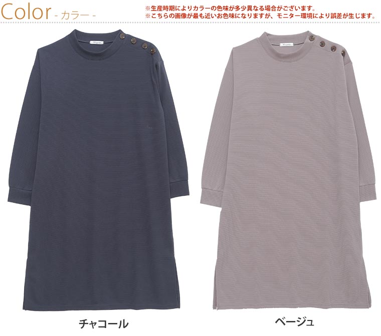 4. 大きいサイズ 肩ボタン 使い スリット ワンピース