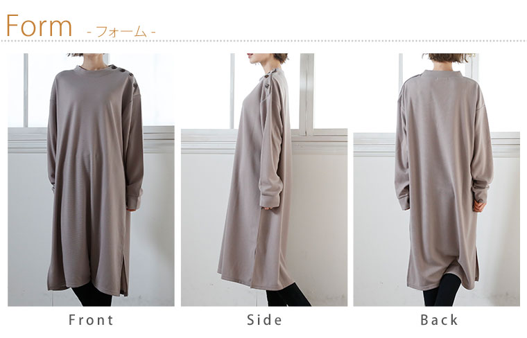 3. 大きいサイズ 肩ボタン 使い スリット ワンピース