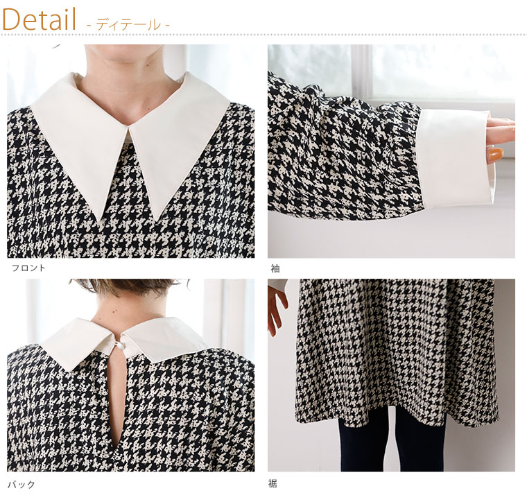 上品レトロな千鳥柄クレリックワンピース