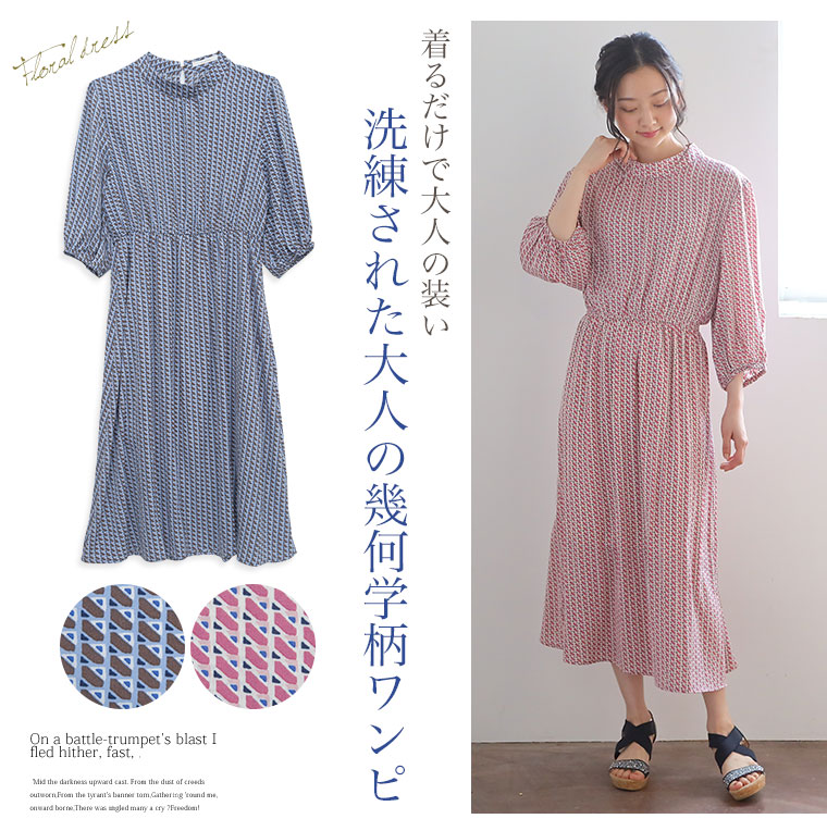 上品に美人魅せするプチハイデザイン幾何学ワンピ