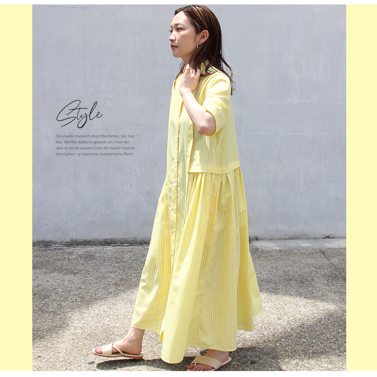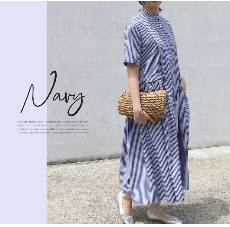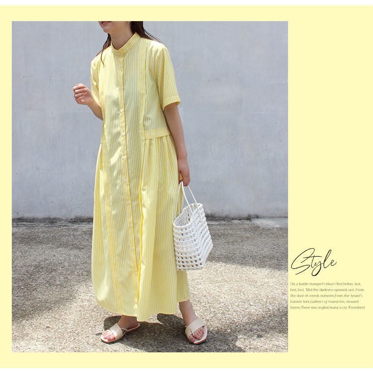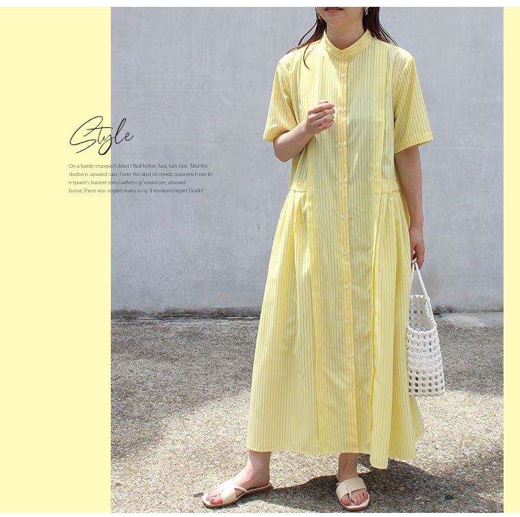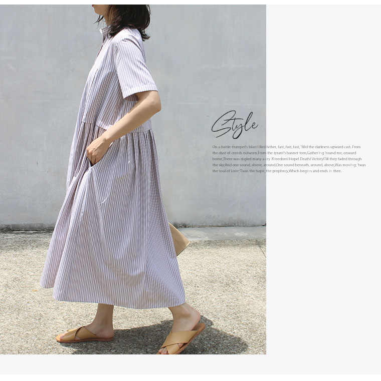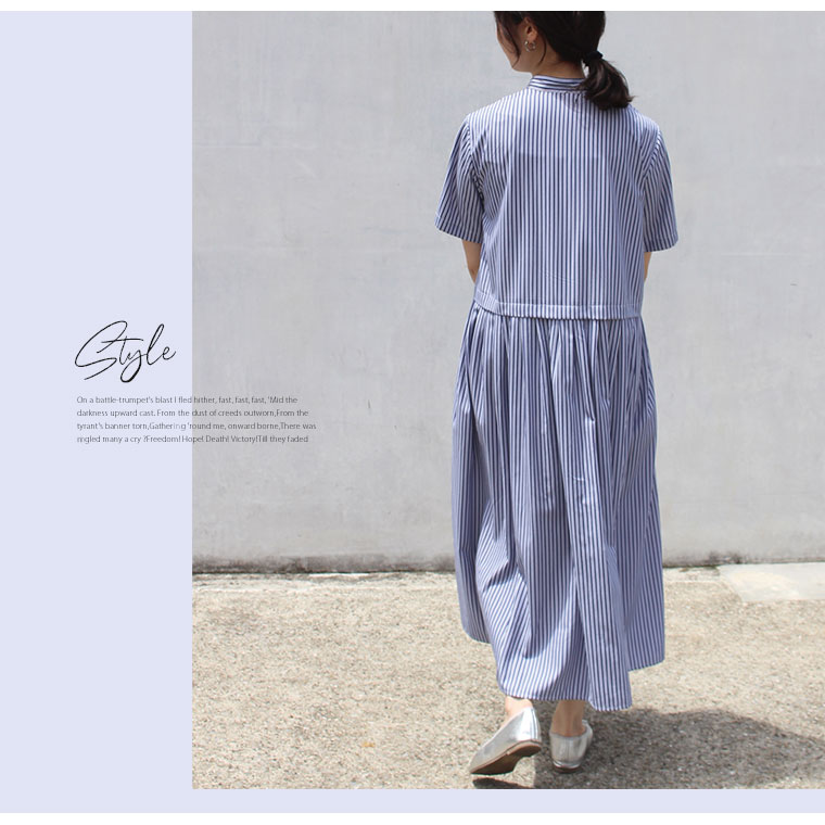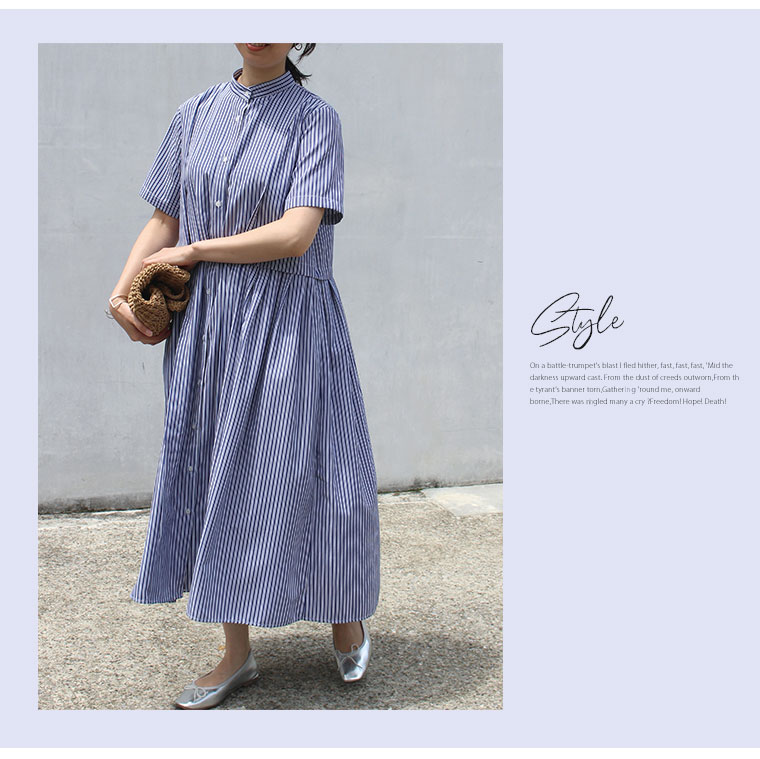 ふわりと広がるストライプワンピース