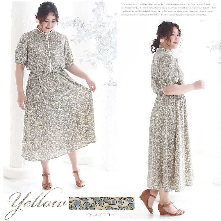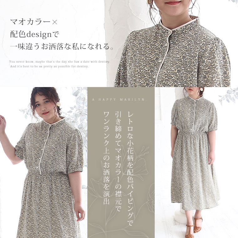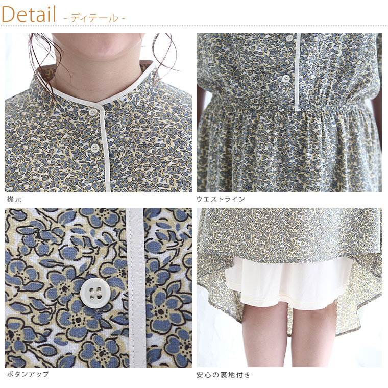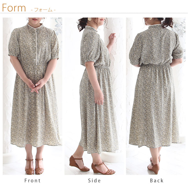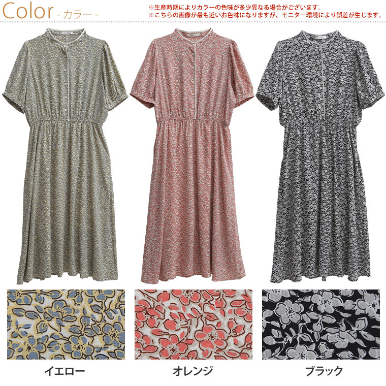 マオカラー×小花レトロ柄 Onepiece