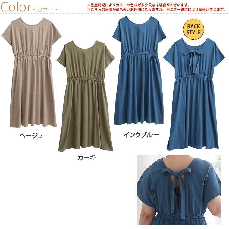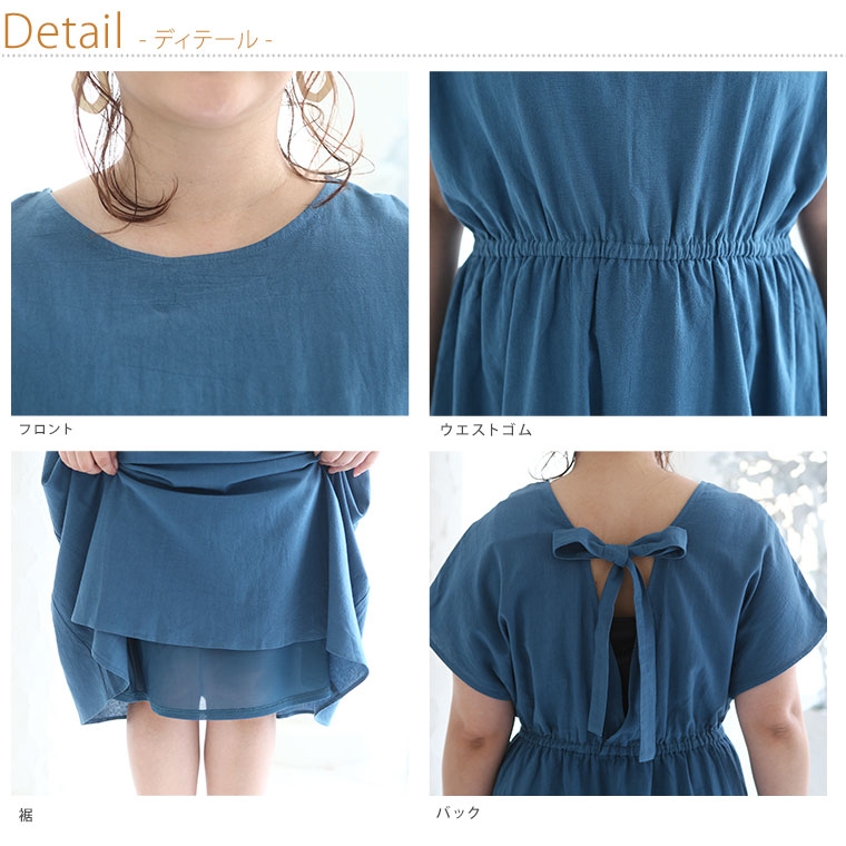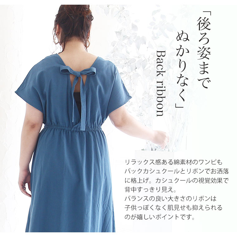 綿でさらっと心地よい素材が嬉しいバックリボンワンピース