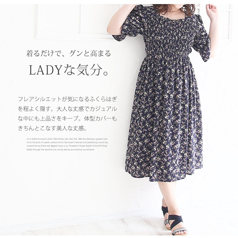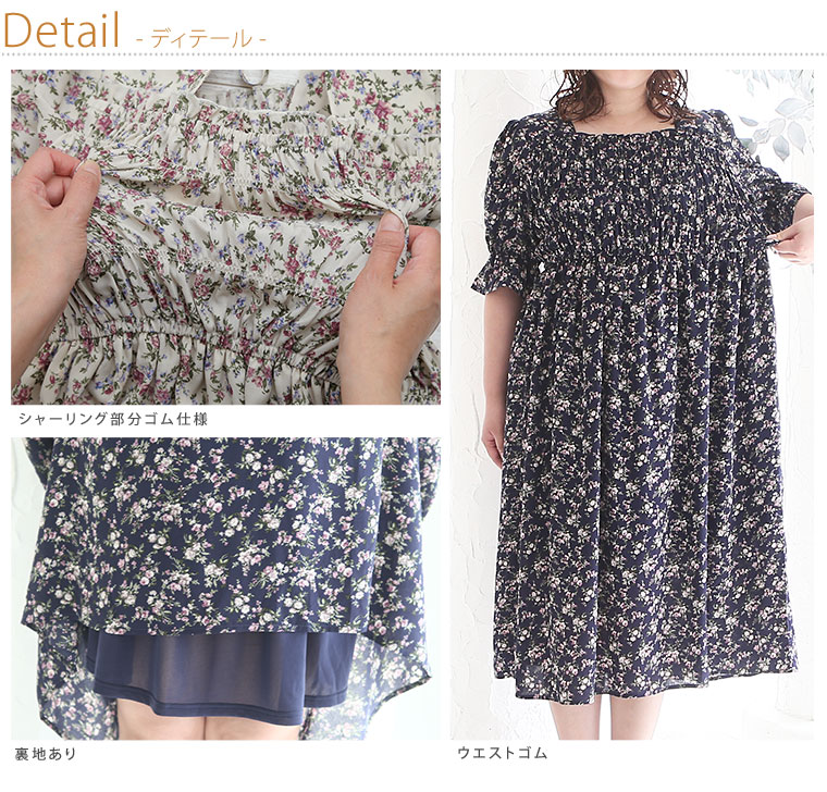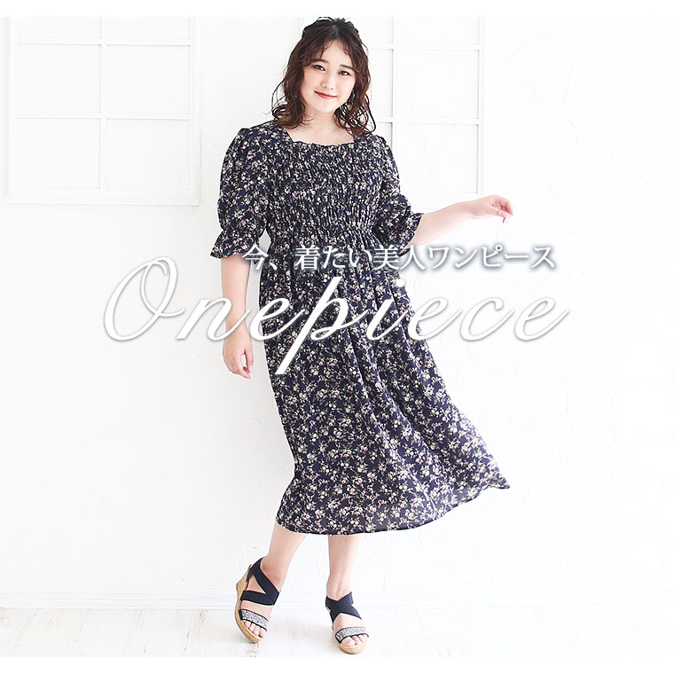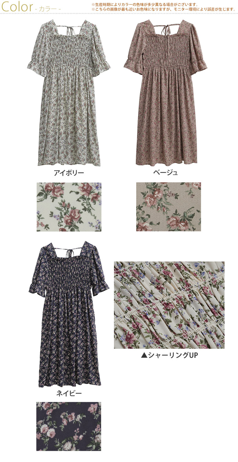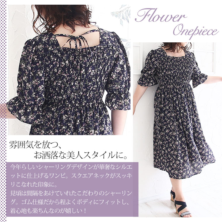 シャーリングデザインで華奢なシルエットに仕上げるワンピース