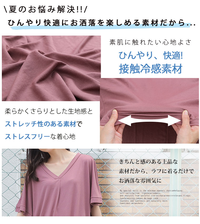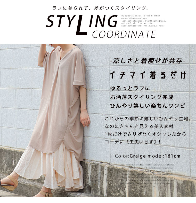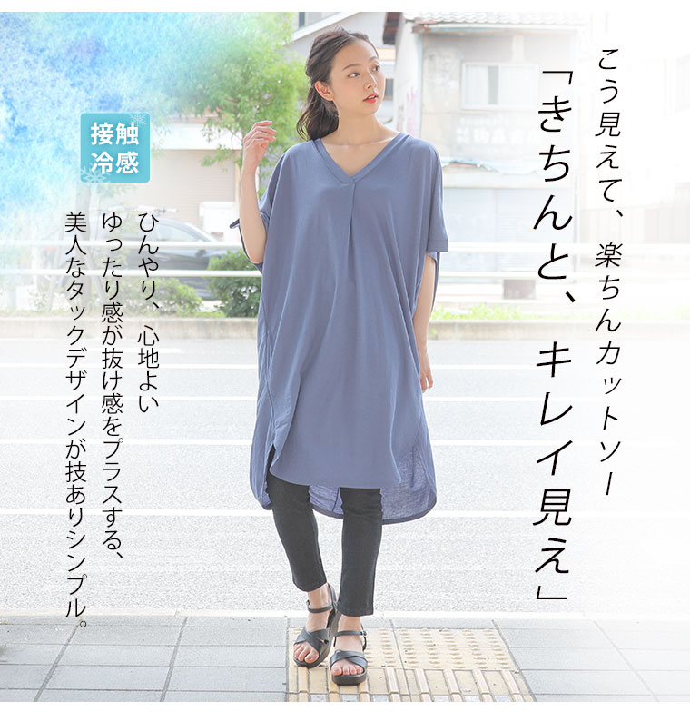 ゆるっとラフにお洒落スタイリング完成!ひんやり嬉しい楽ちんワンピース