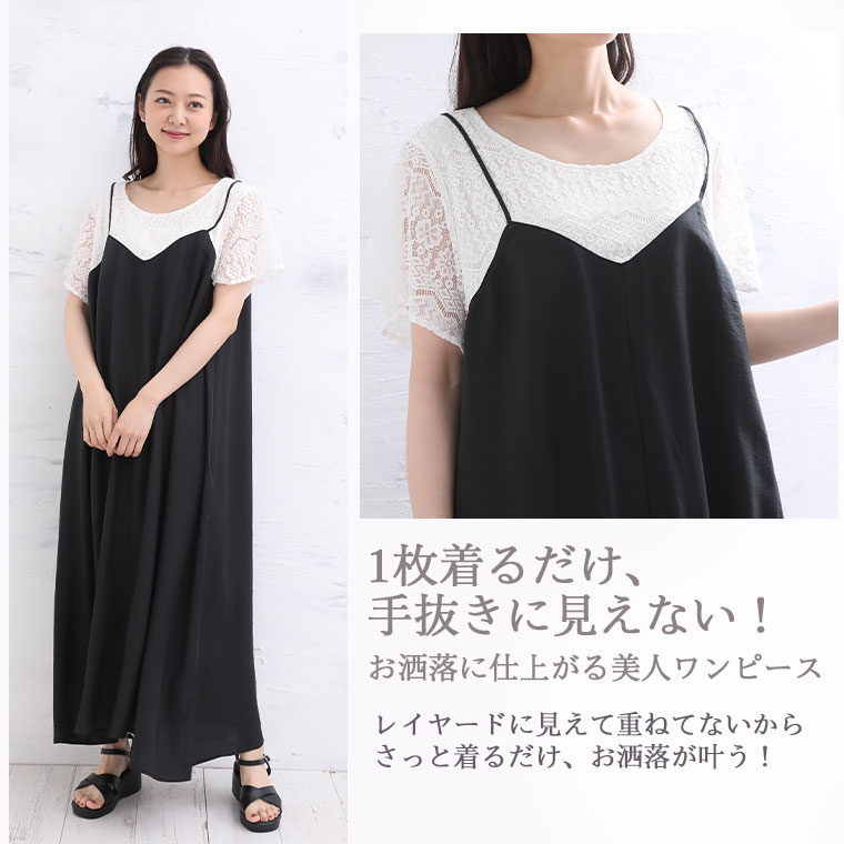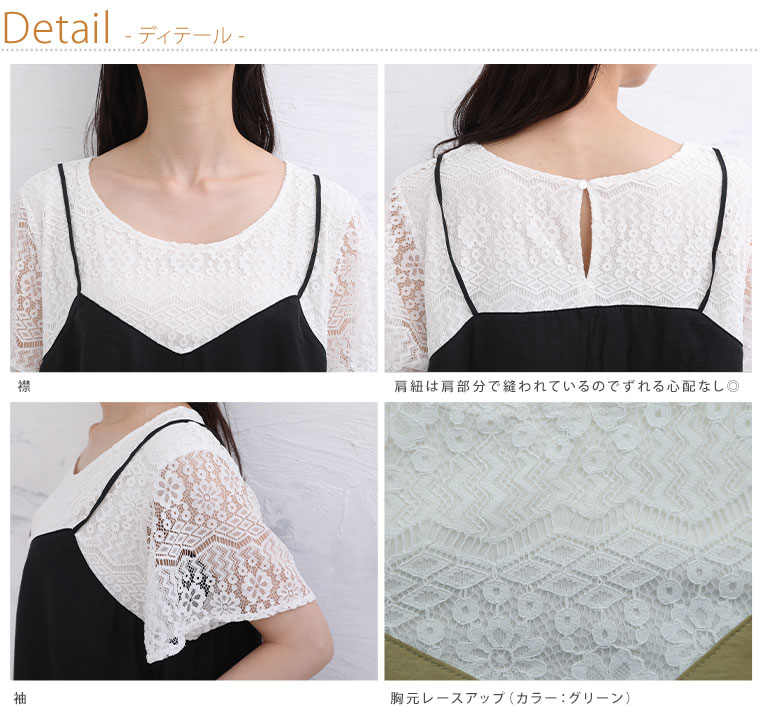 重ね着風のレースのフェイクインナーが大人感を醸し出す