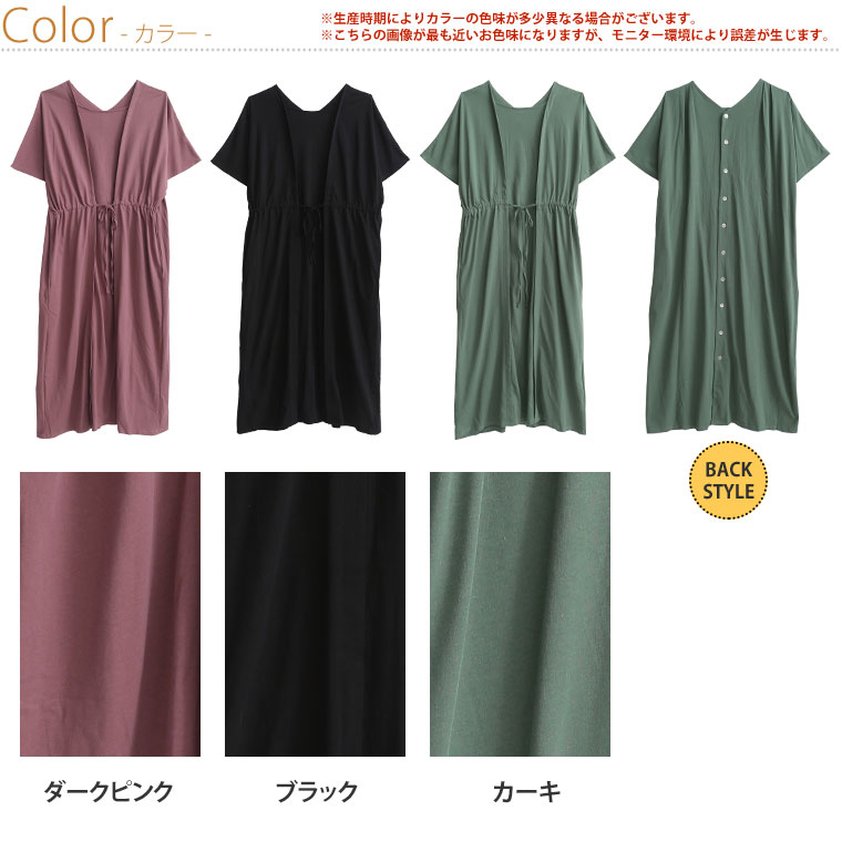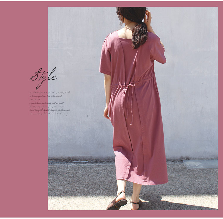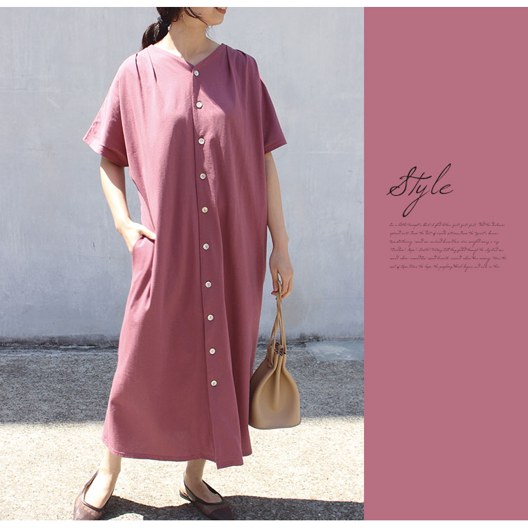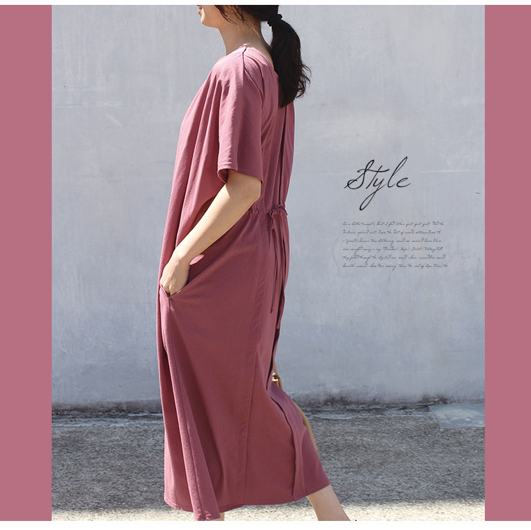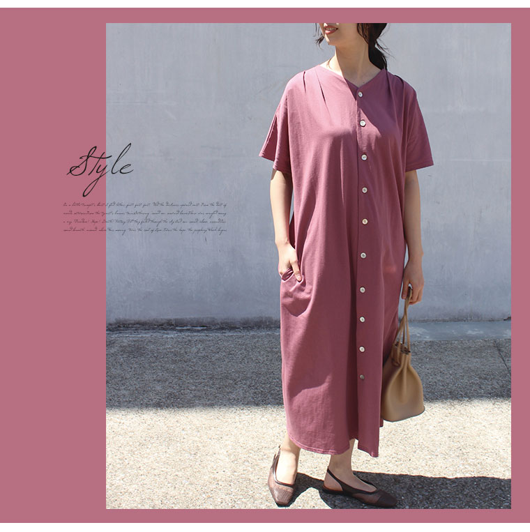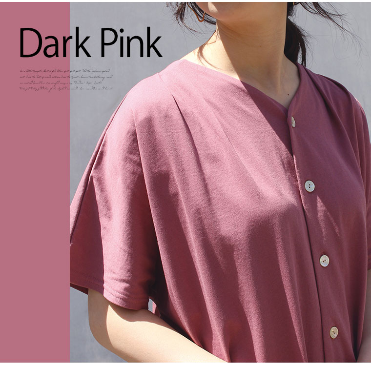 ダークピンクを購入致しました。 明るすぎず暗すぎず可愛い色味で、生地も優しい手触りで着心地が良かったです。 一枚で着られるのが楽ですし、普段着にもお出掛けにもどちらにも使えて良いお買い物をしたと思っております。