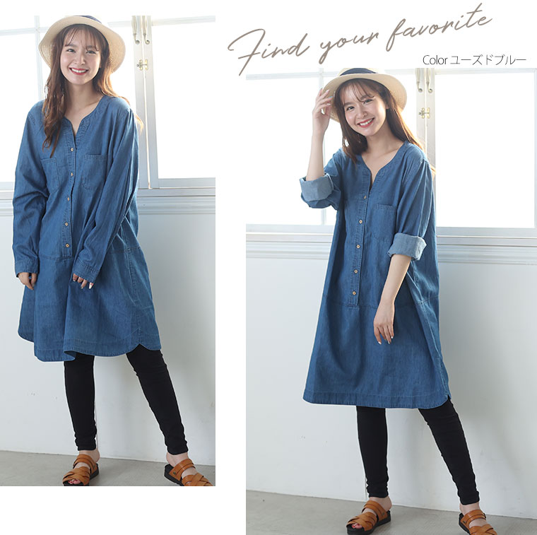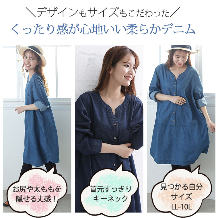 着心地軽やかコットンデニムワンピース