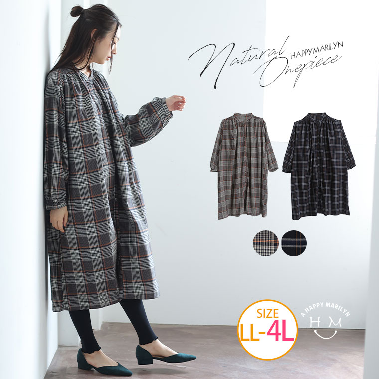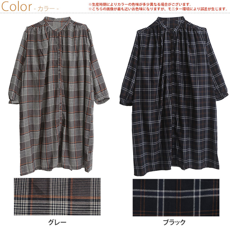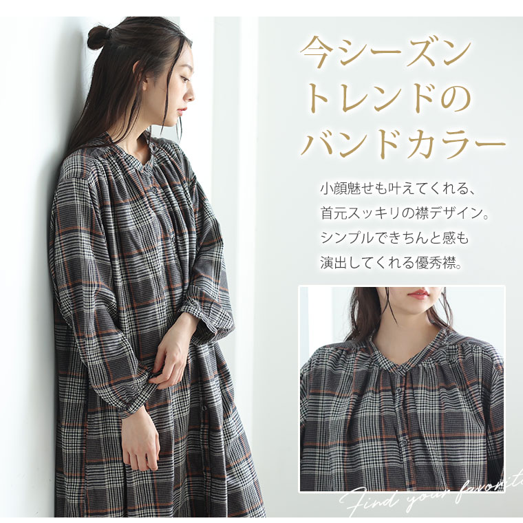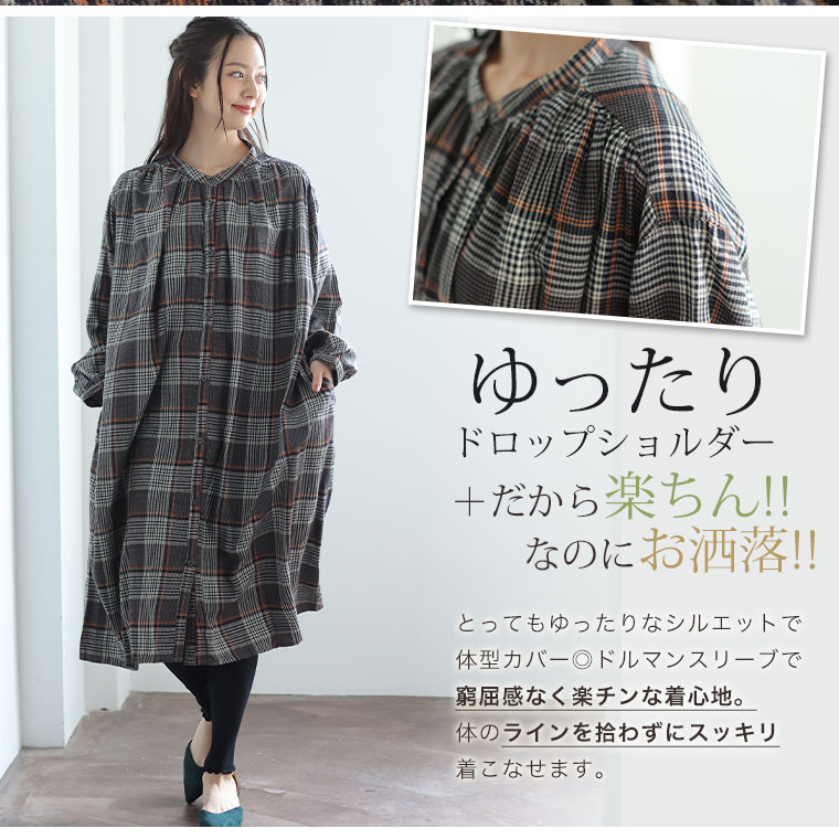 とろみ生地 ネルチェックワンピース