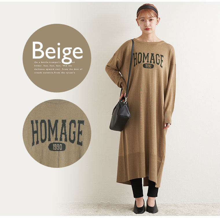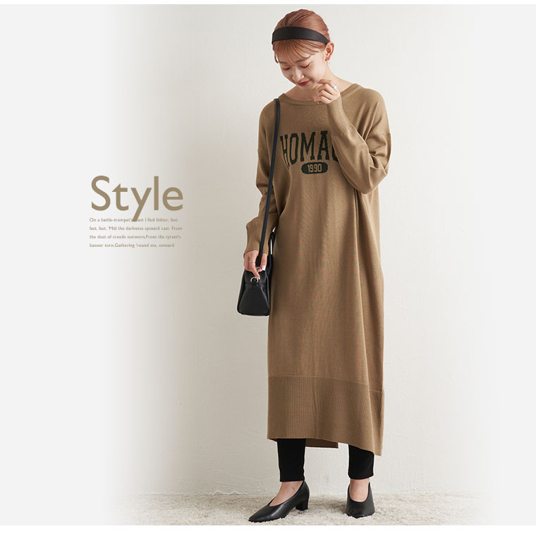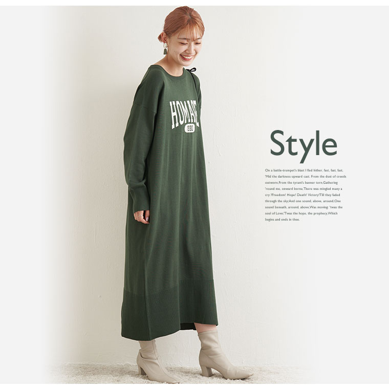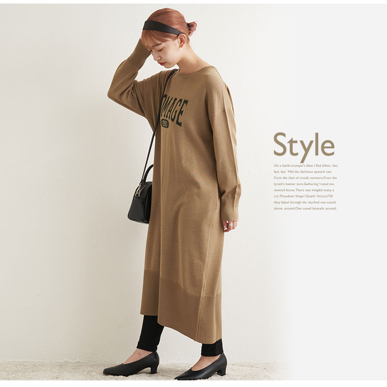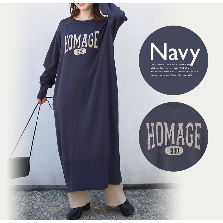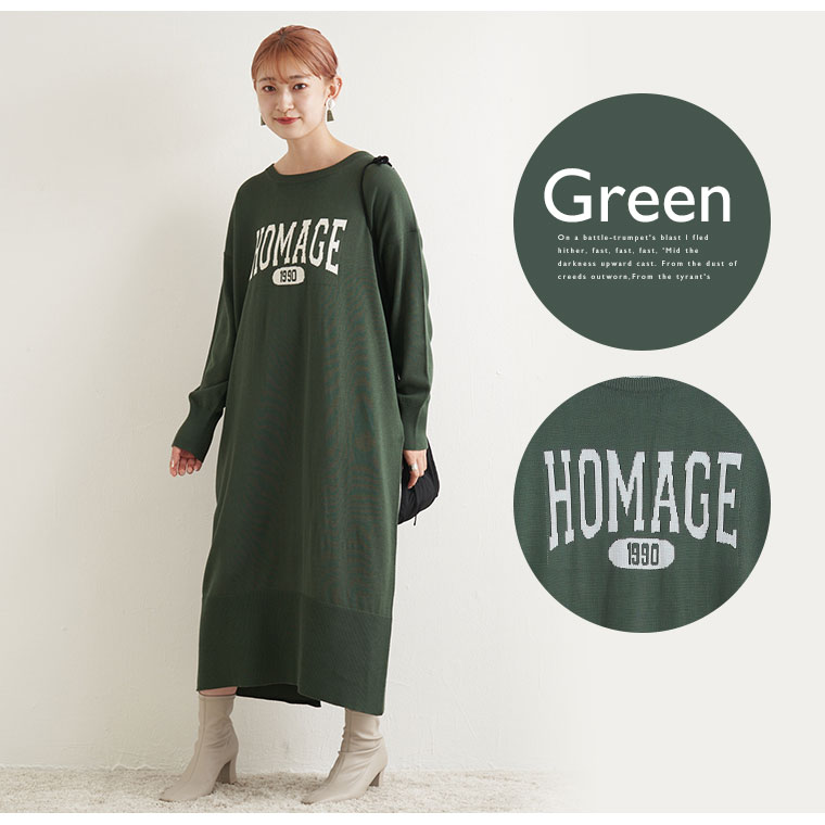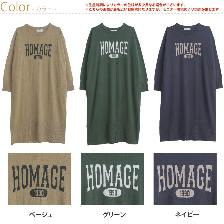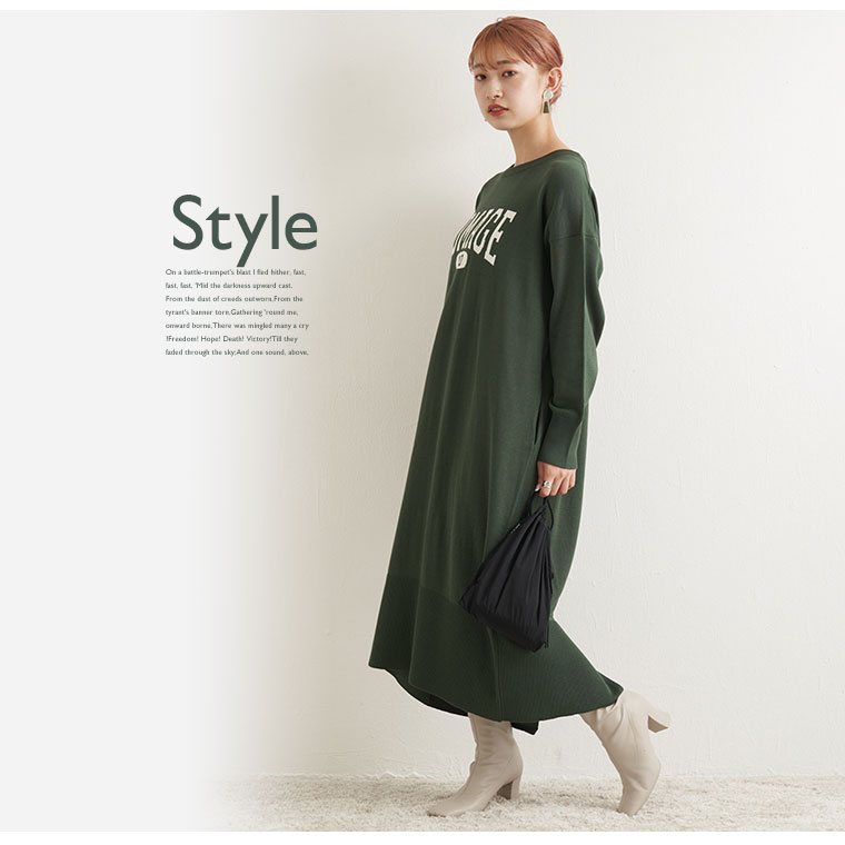 4. 大きいサイズ 【LAVEANGE】カレッジロゴ バックスリット ニットワンピース