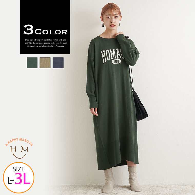 ワンピ デザインワンピ LL 3L 秋 秋物 秋服 冬 冬物 冬服 ぽっちゃり ゆったり おしゃれ カジュアル プラスサイズ ラビアンジェ 【LAVEANGE】カレッジロゴ バックスリット ニットワンピース