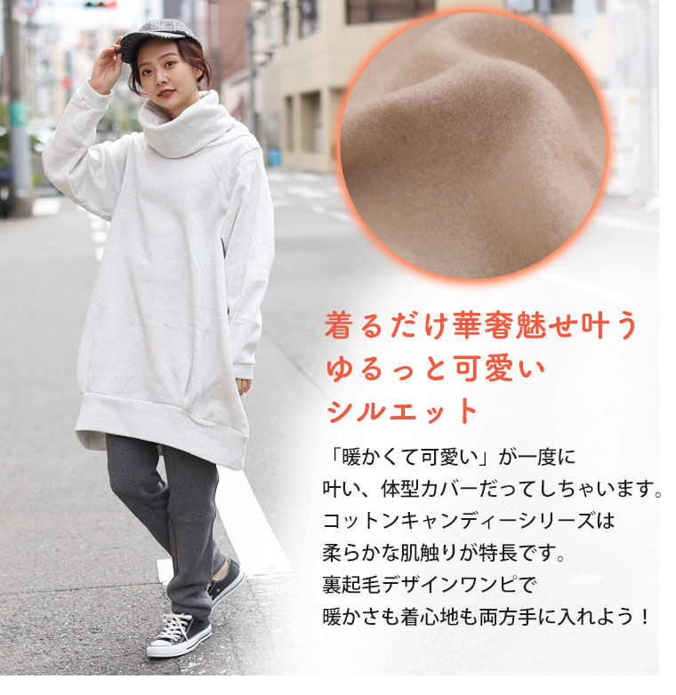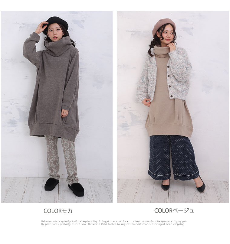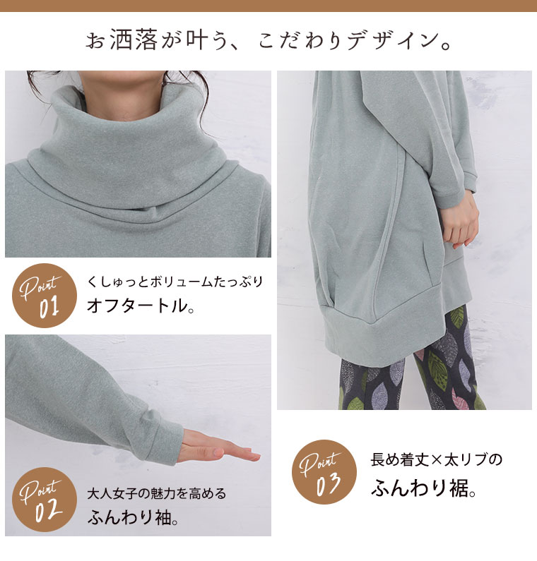 軽い着心地+ふんわり可愛い素材感のオフタートルワンピース
