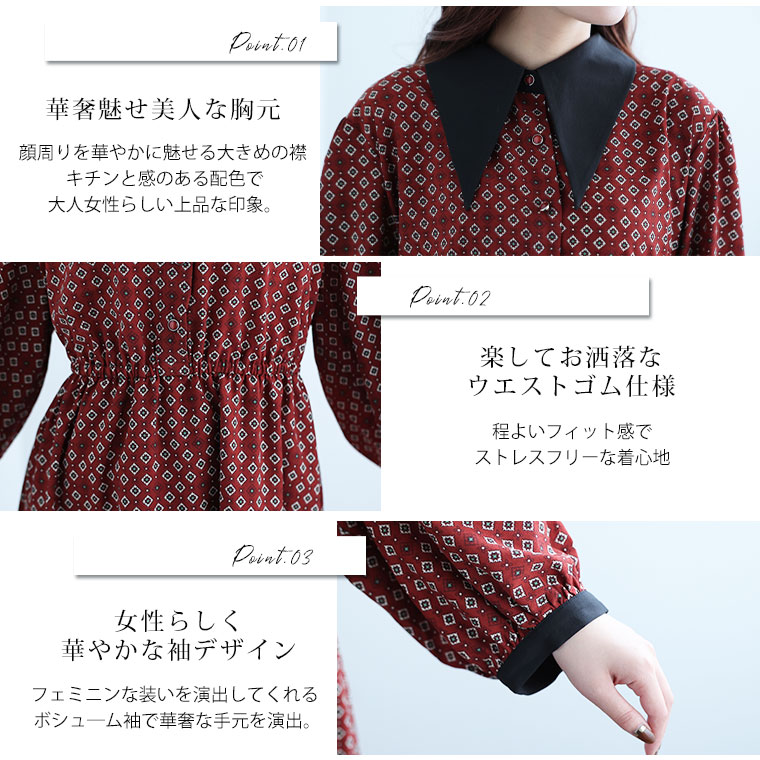 柄×配色で女性らしく華やかに仕上げる