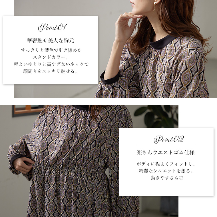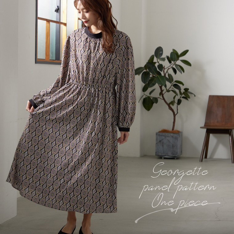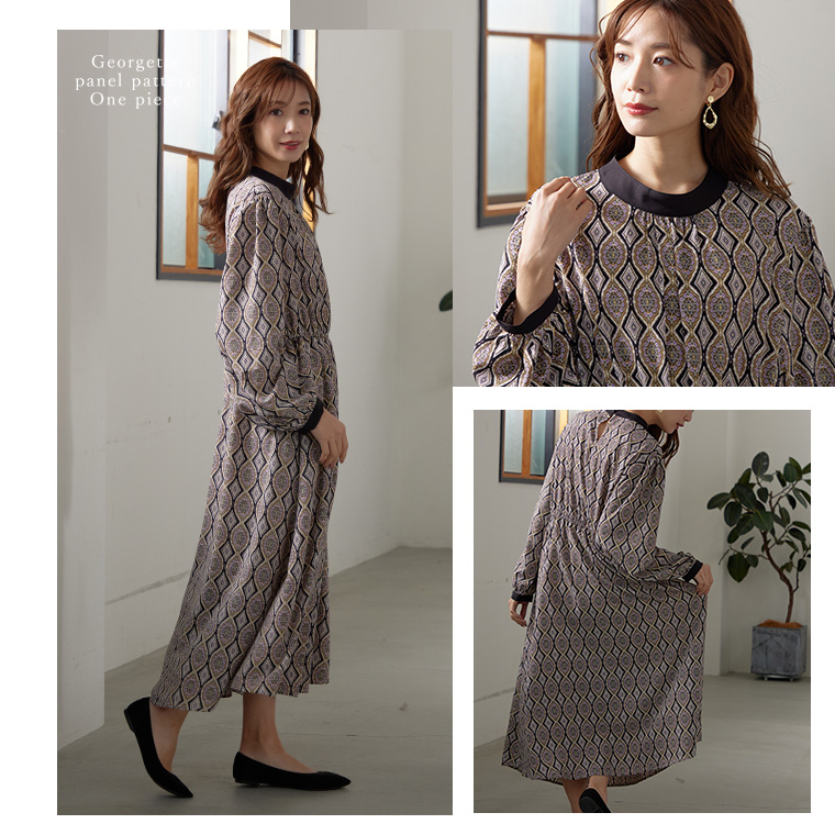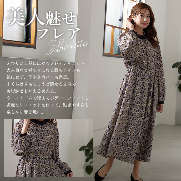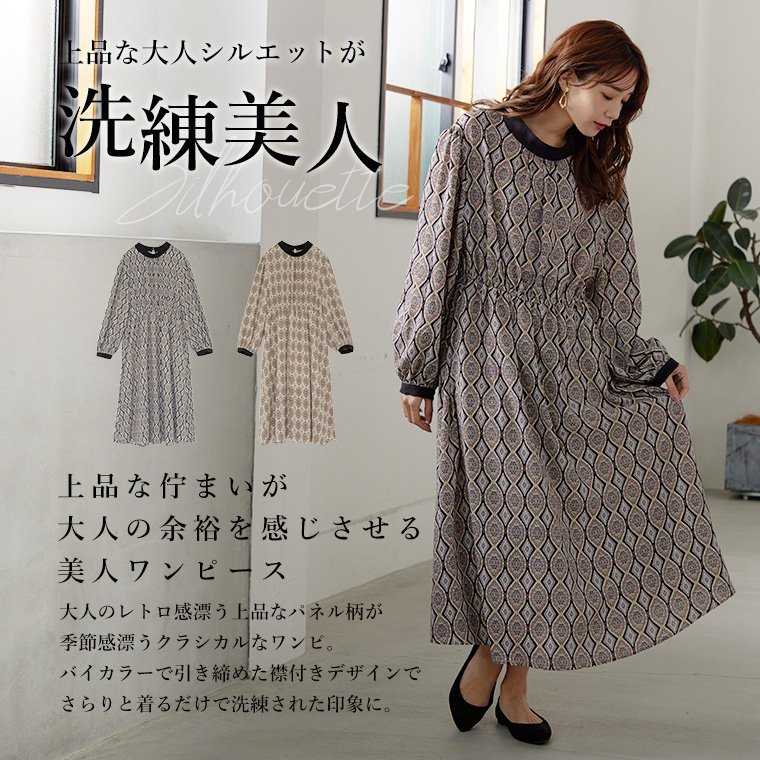 大人の上品なレトロワンピース配色で一枚でこなれ感