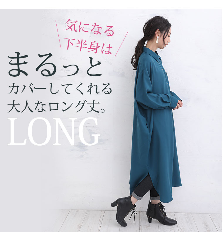気になる下半身はまるっとカバーしてくれる大人なロング丈ワンピ