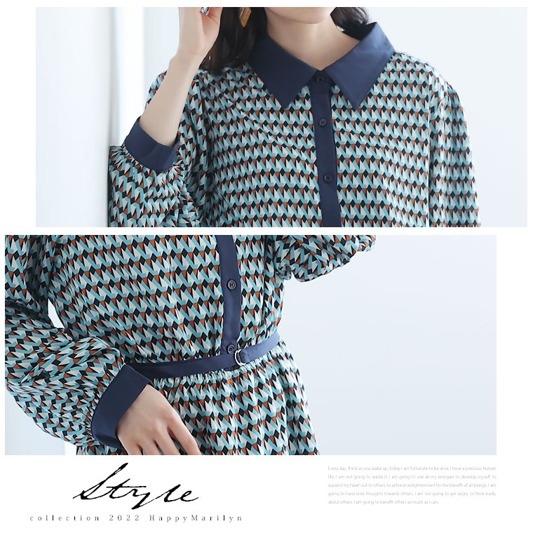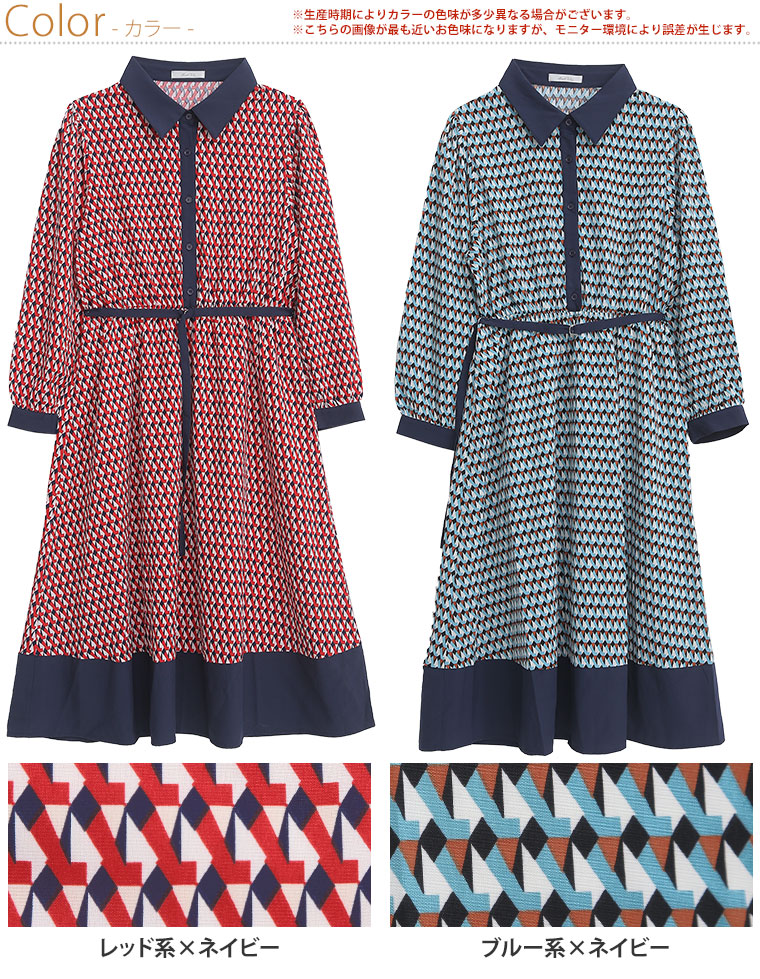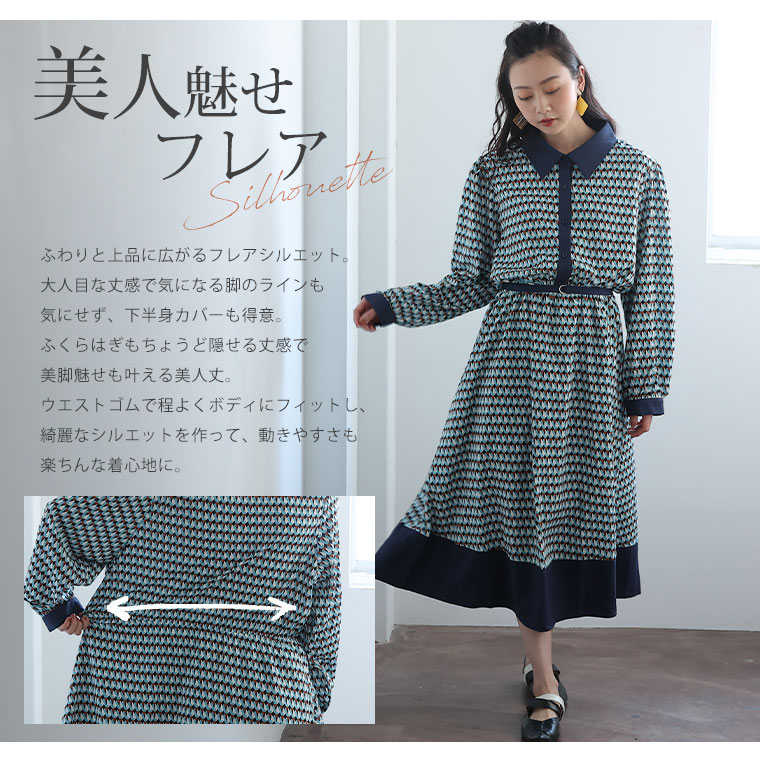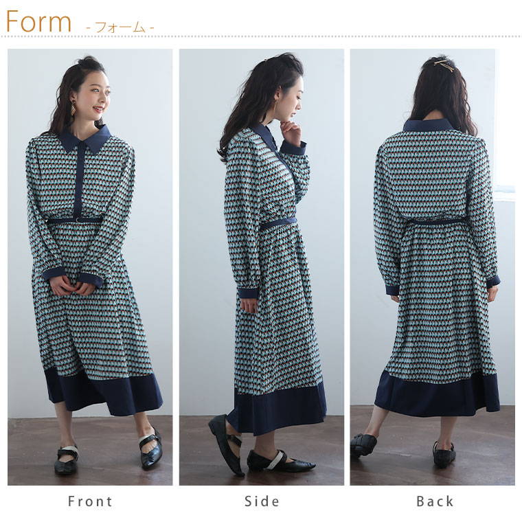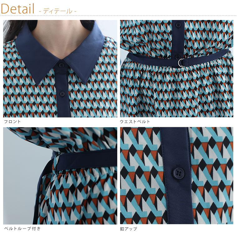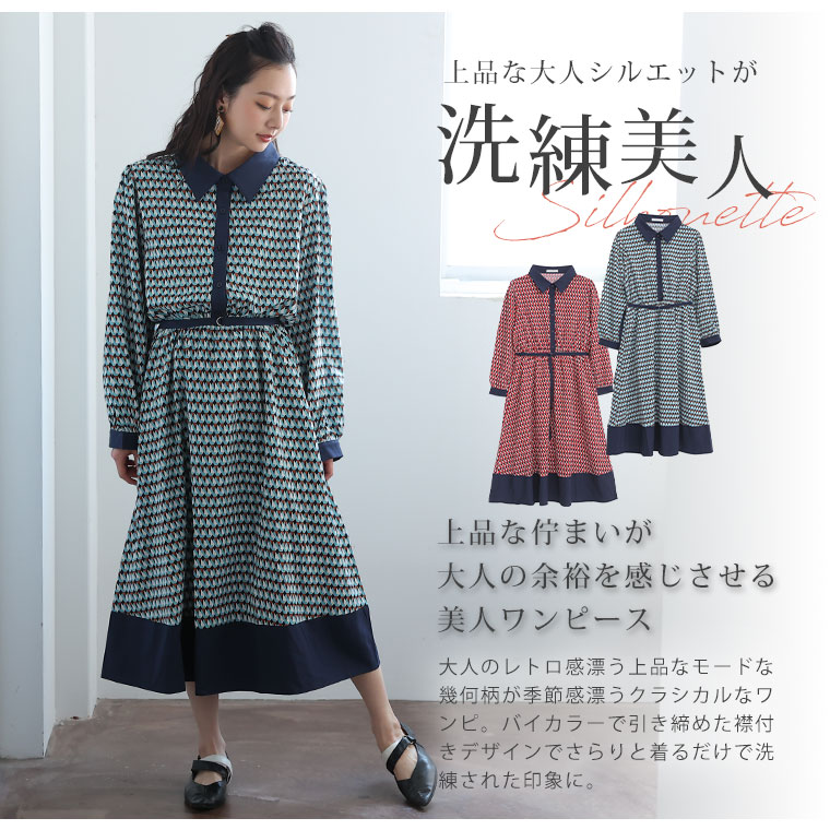 【Rin】デシン幾何学柄プリントワンピース