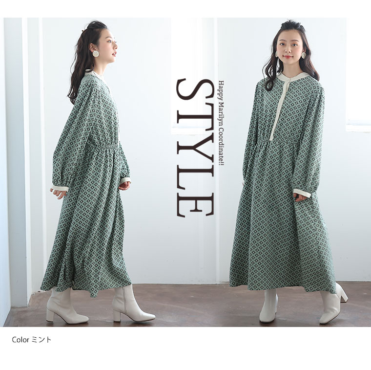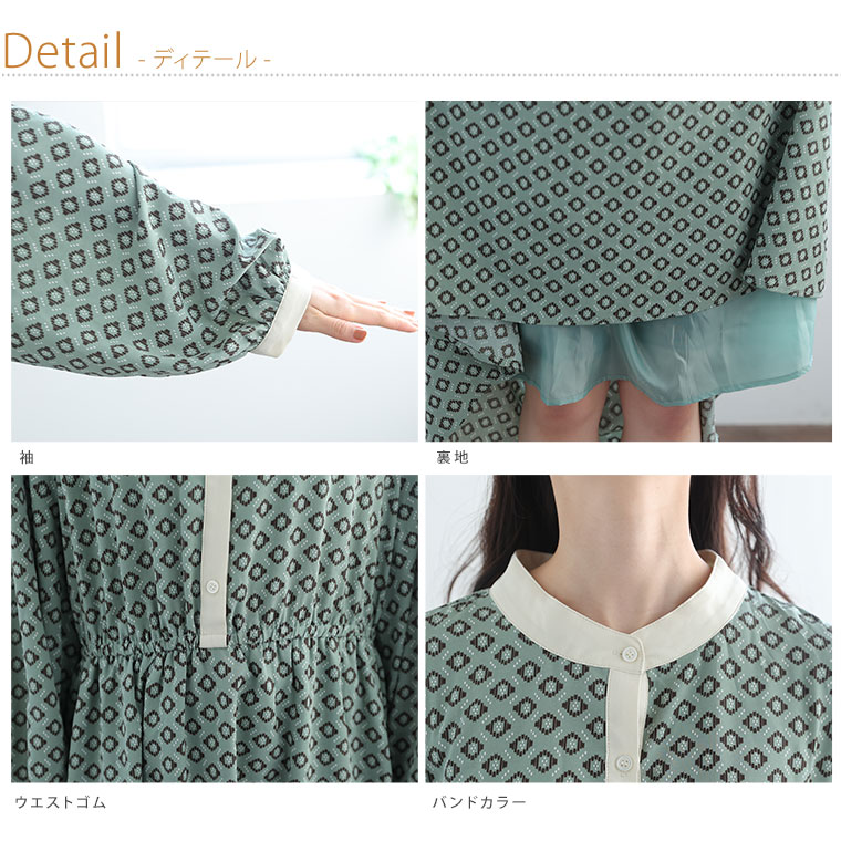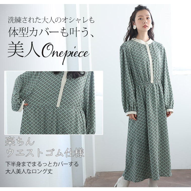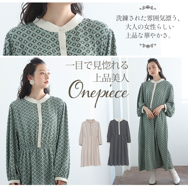 大人のきれいめレトロ柄ワンピース