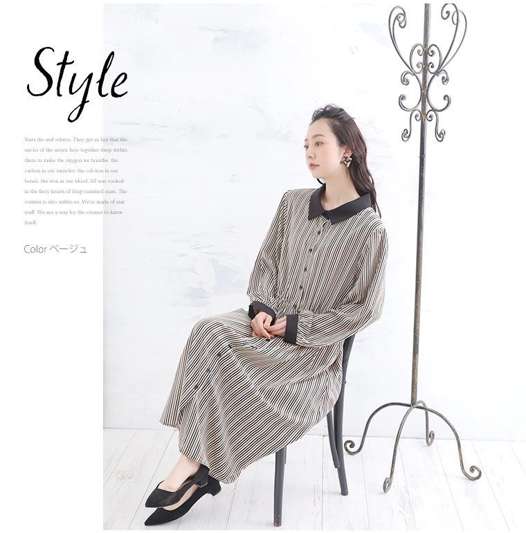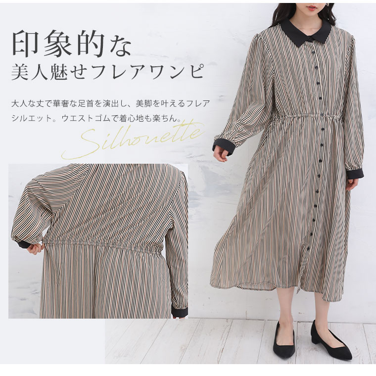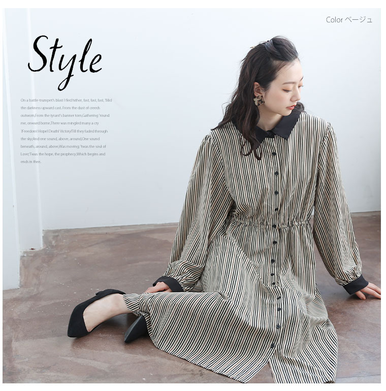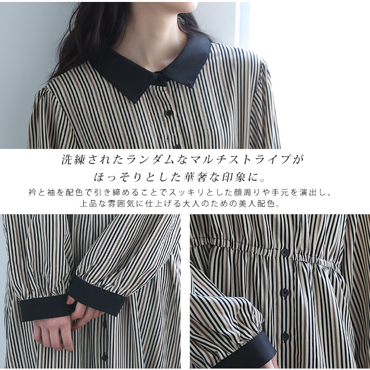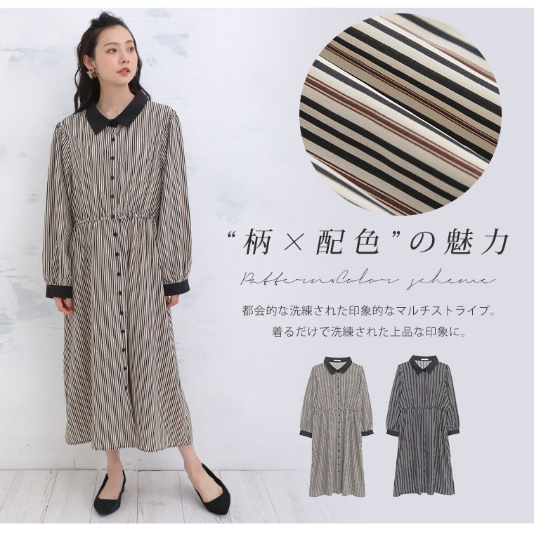 【Rin】マルチストライプ柄プリントワンピース