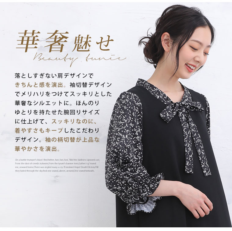 選べる柄バリエーション3カラー。ふんわりと包み込む体型カバーが嬉しい