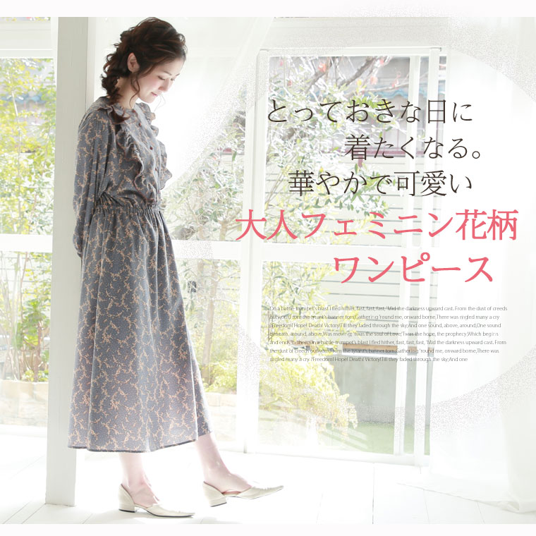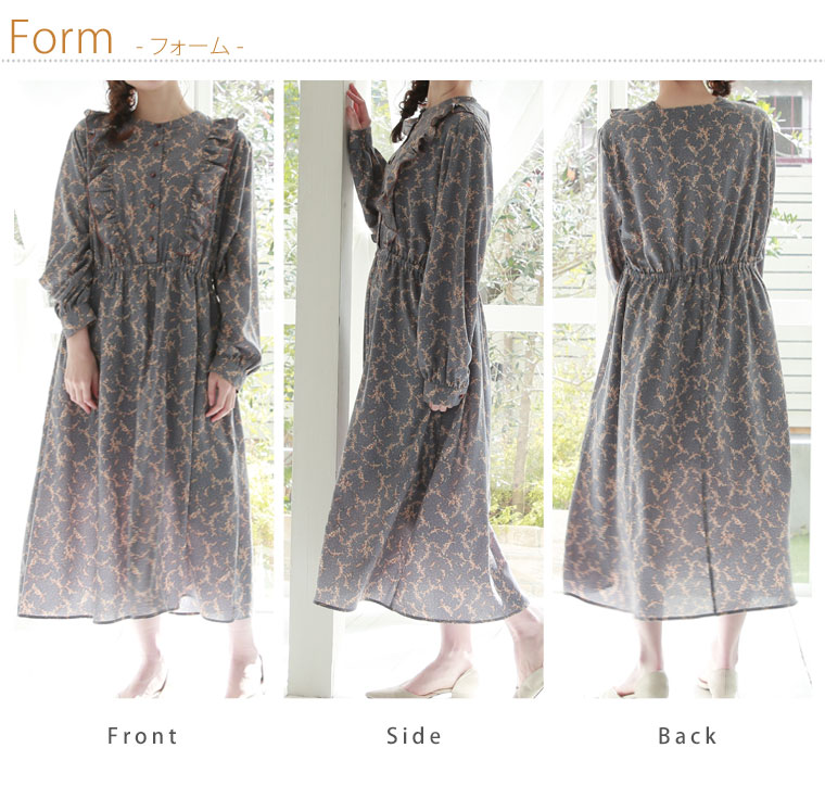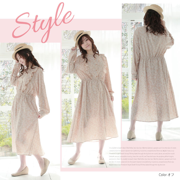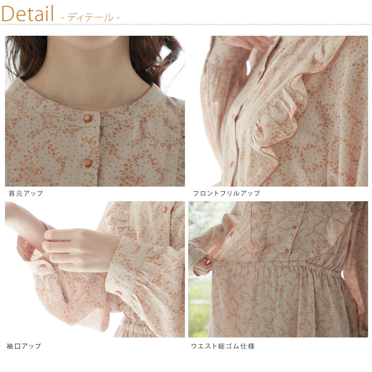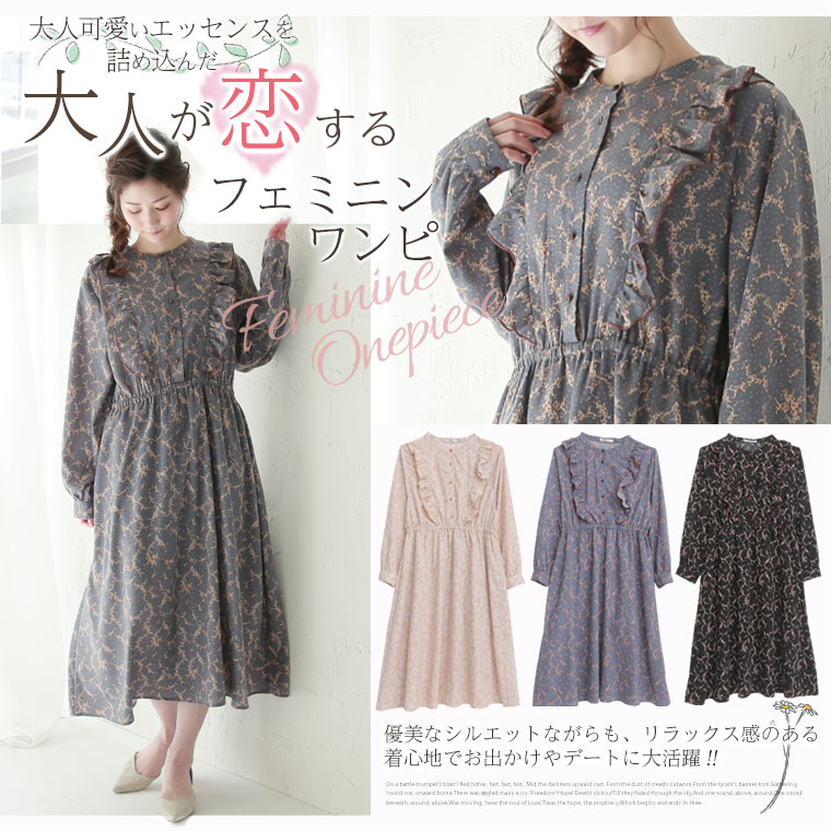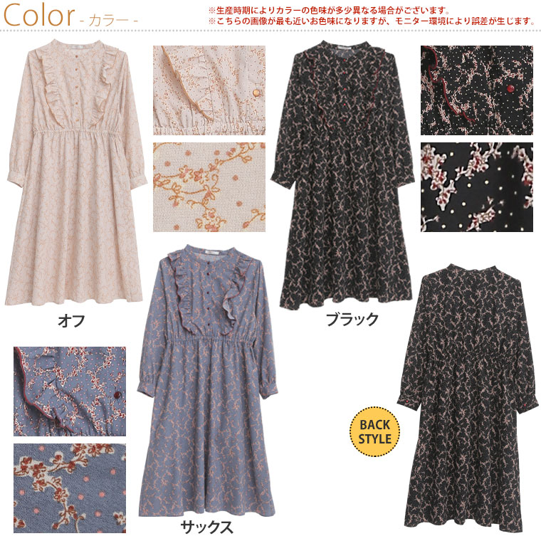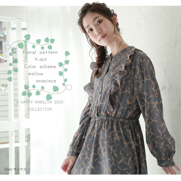 上品フリルが大人可愛い バンドカラー配色メローワンピース