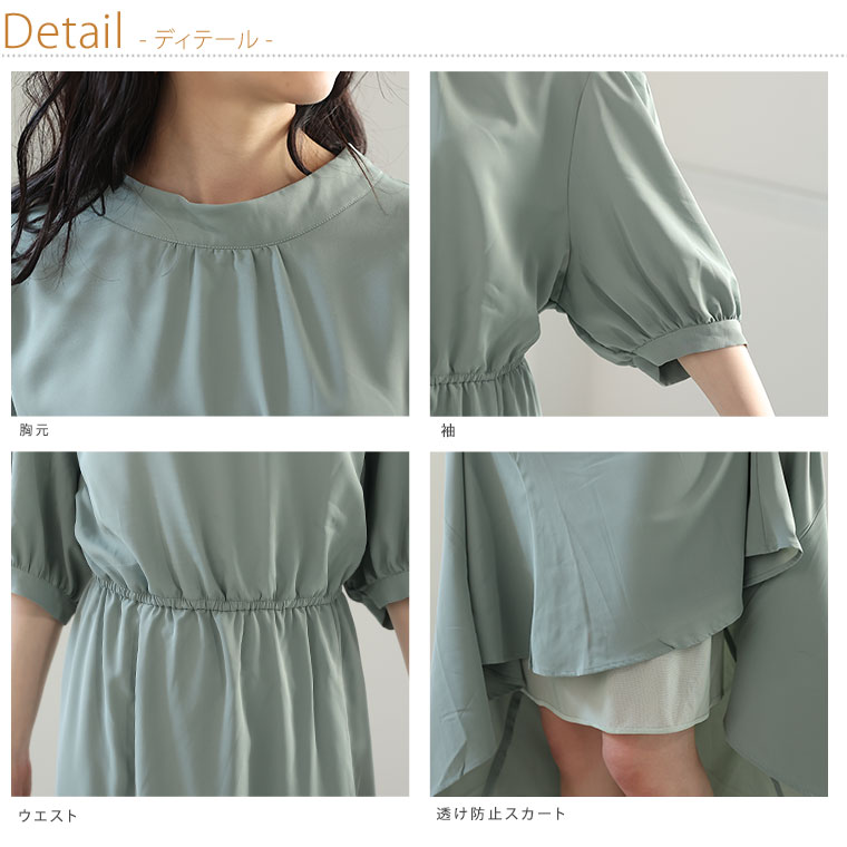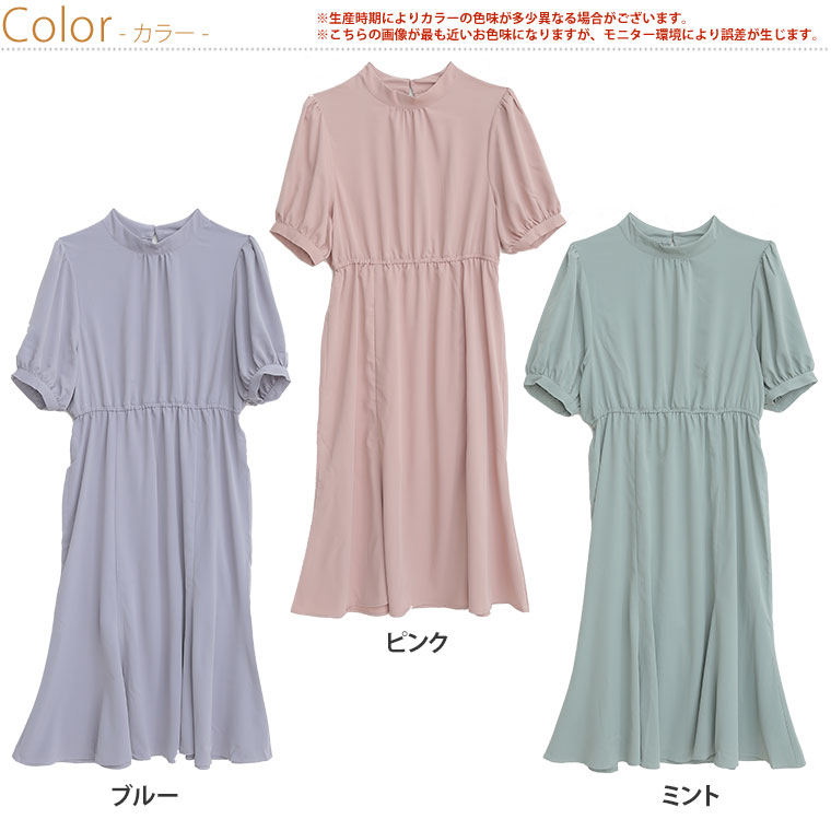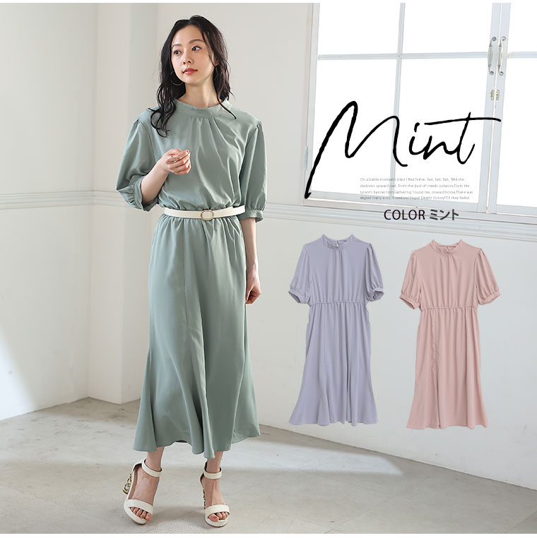 バンドカラーですっきり魅せるジョーゼット生地ワンピース