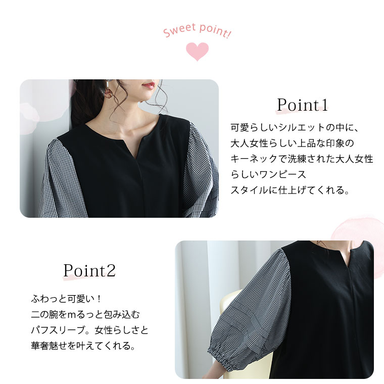 大人女性らしい上品な印象の高見えでキーネックデザイン