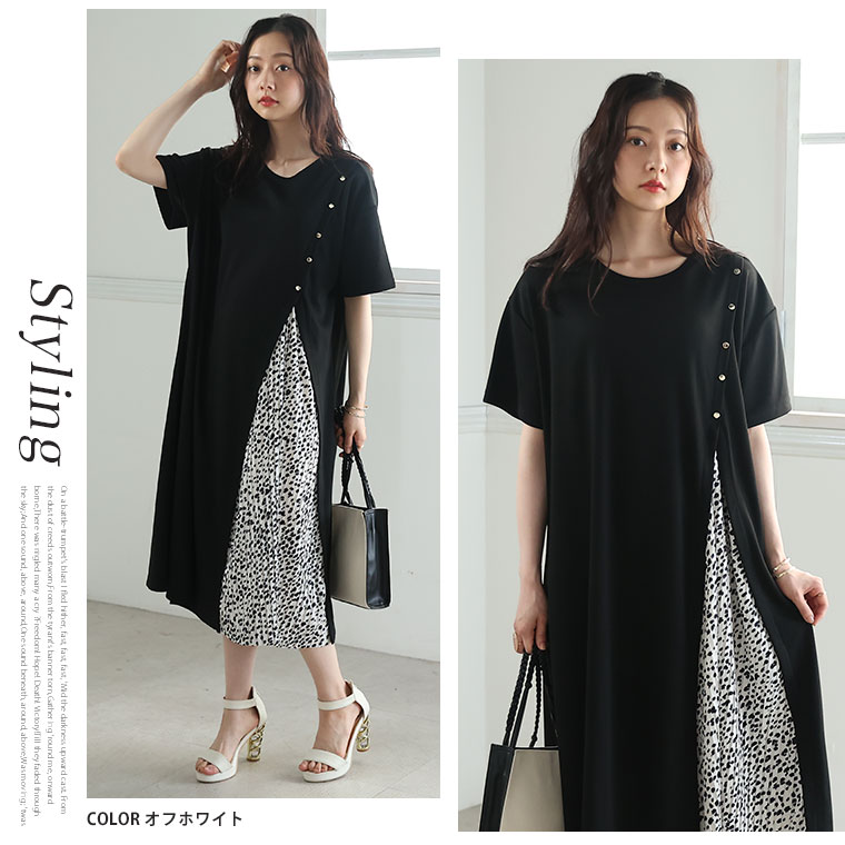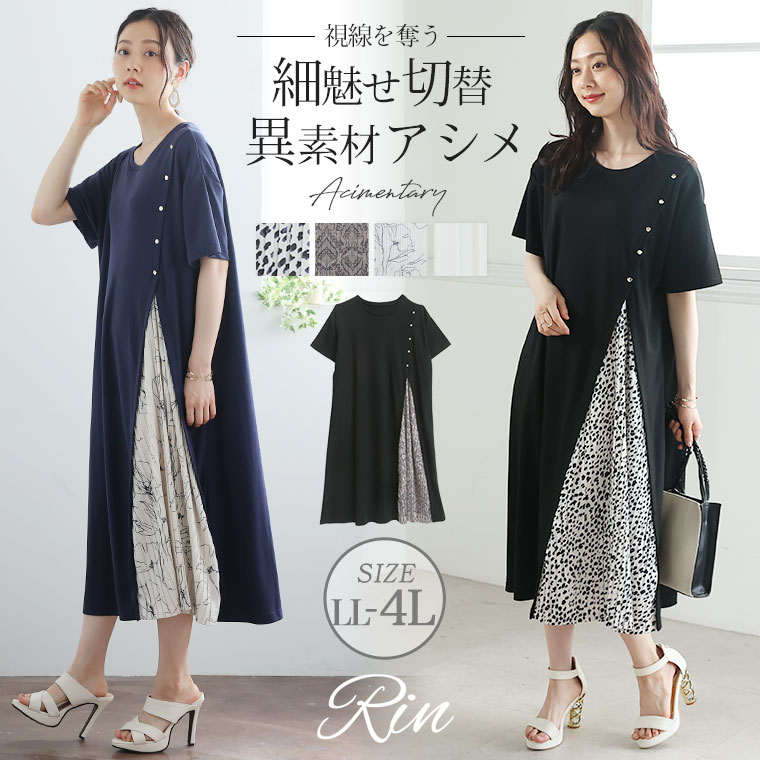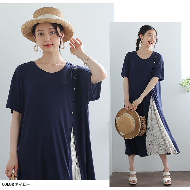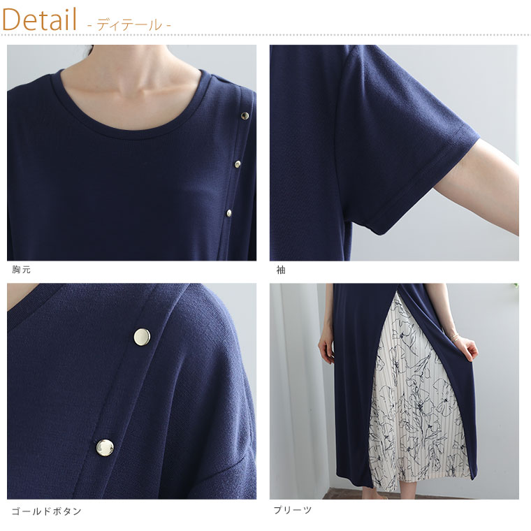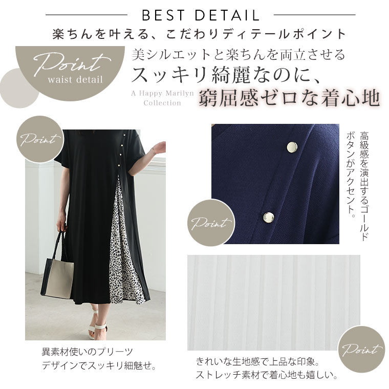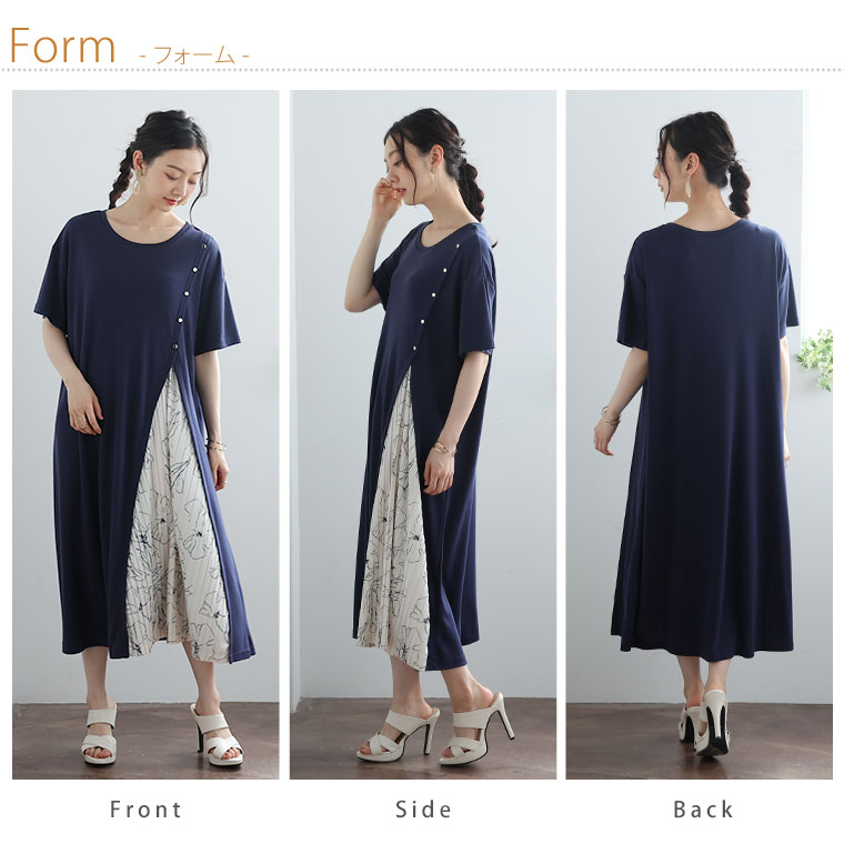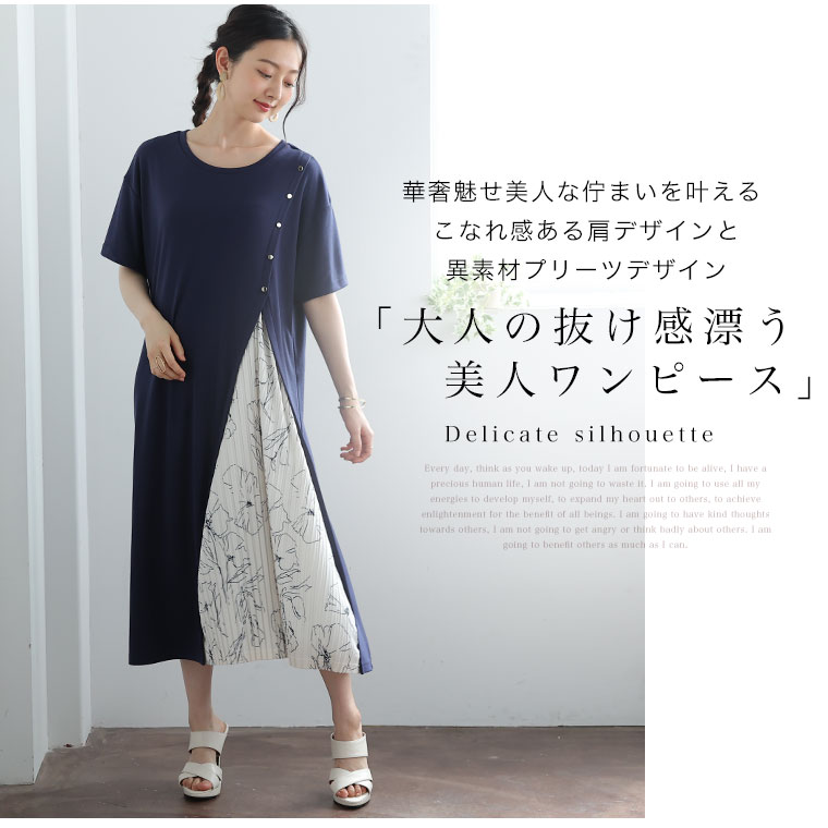 プリーツを使った異素材デザインの美人シルエットワンピース