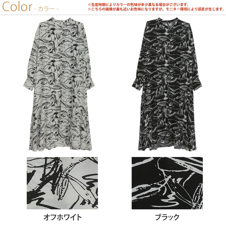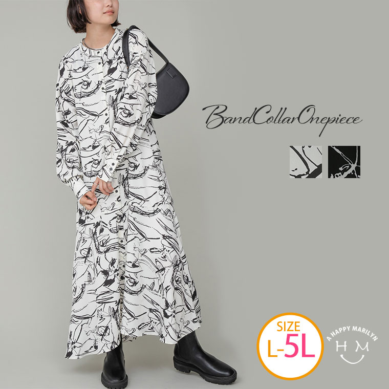 6. 大きいサイズ 【LAVEANGE】線画バンドカラーワンピース