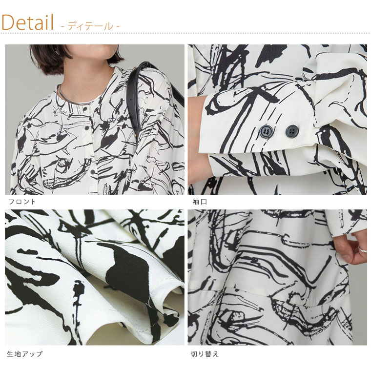 サイズ単位:cm 身丈 バスト 肩幅 袖切替部分周り 袖丈 袖口周り 裾周り 素材/透け感
