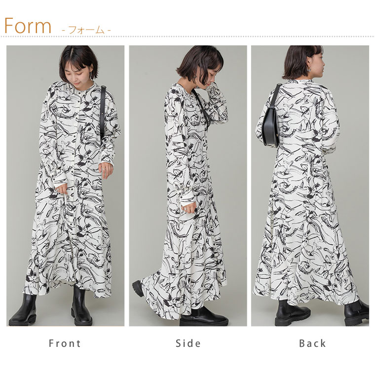 4. 大きいサイズ 【LAVEANGE】線画バンドカラーワンピース