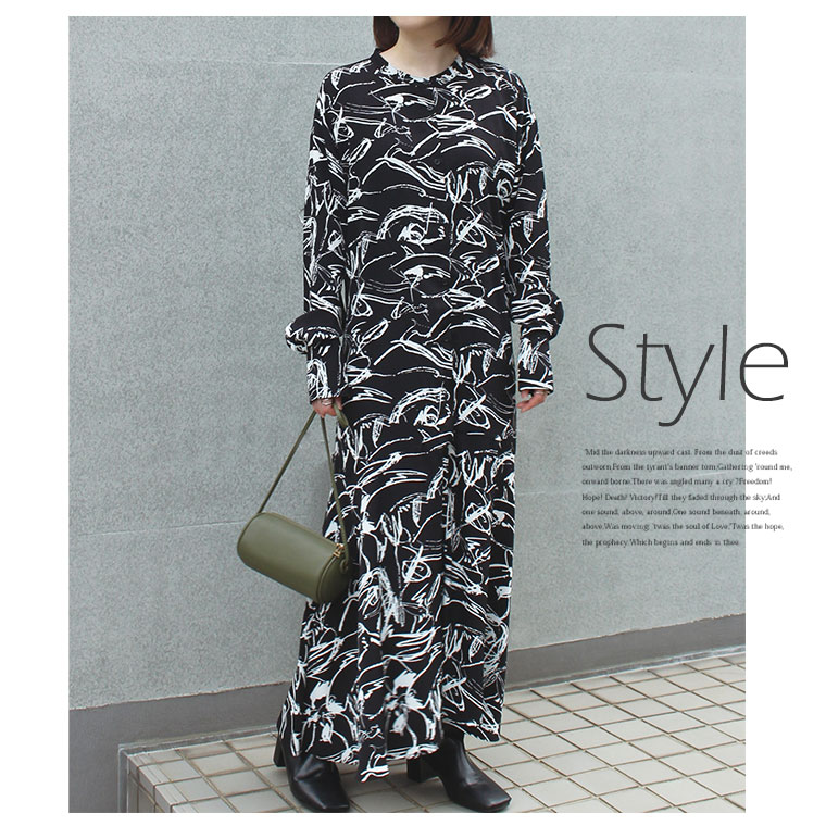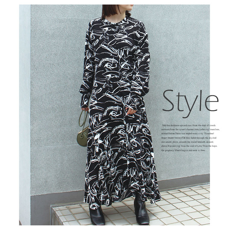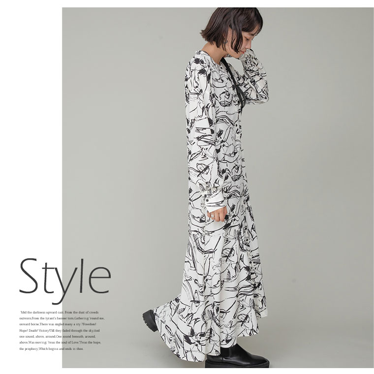 モードな印象の線画が目を惹く、大人のこなれワンピース