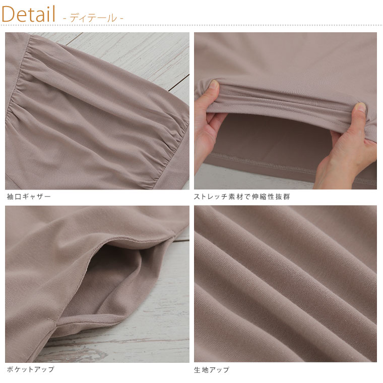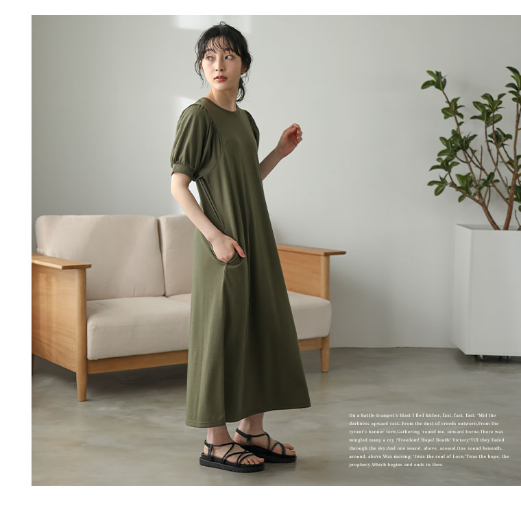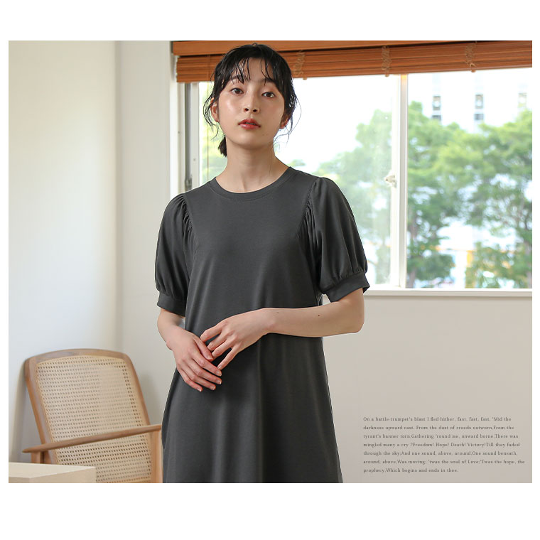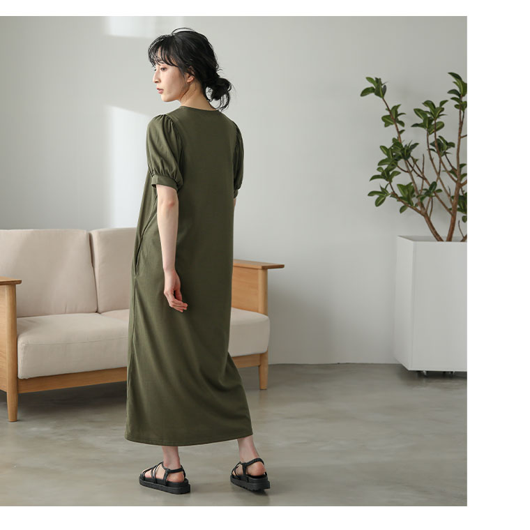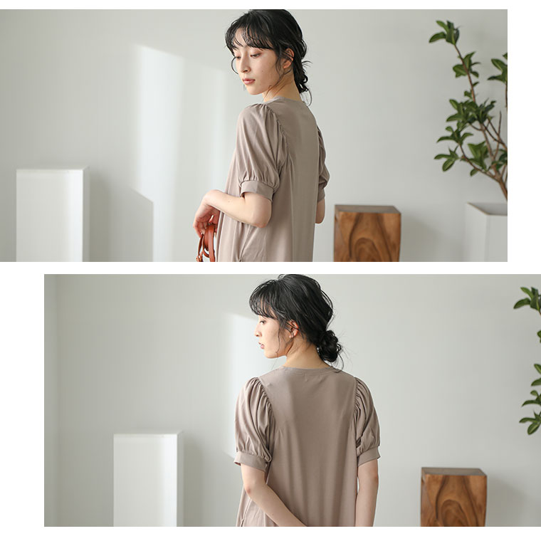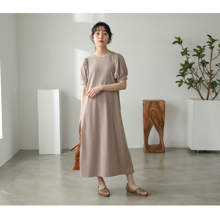 大きいサイズ 【LUMFORLE produced by My:nia】接触冷感 汗染み防止 UVケア 袖ギャザー 美人Aラインカットソーマキシワンピース