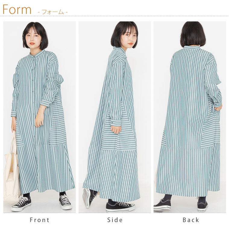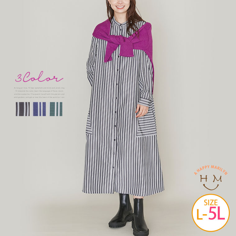 3. 大きいサイズ 【LAVEANGE】ストライプ 斜め切替え ワンピース