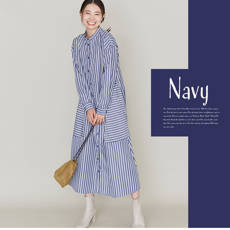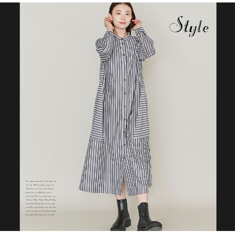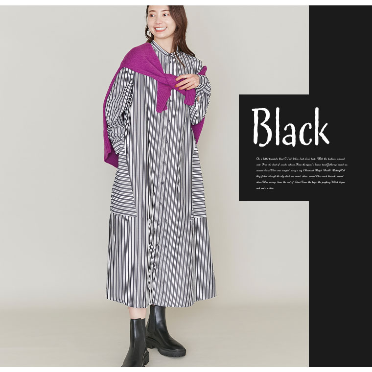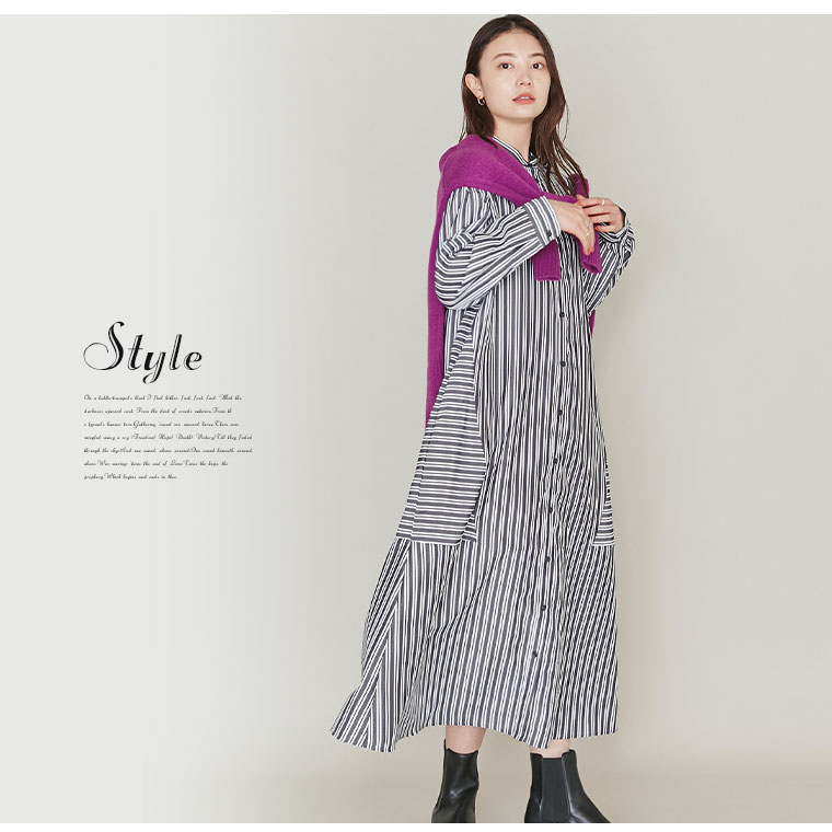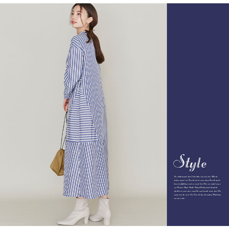 【LAVEANGE】ストライプ斜め切り替えワンピース
