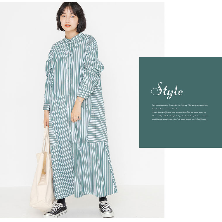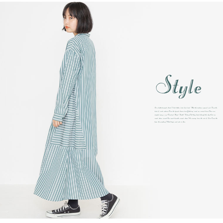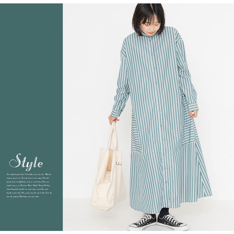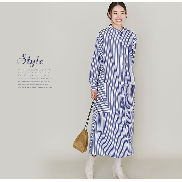 4. 大きいサイズ 【LAVEANGE】ストライプ 斜め切替え ワンピース