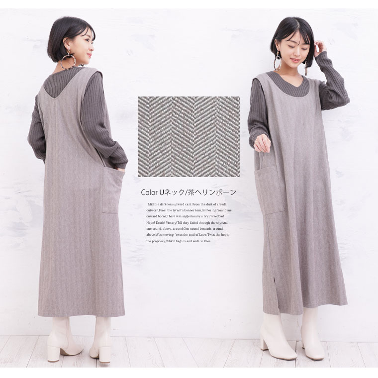 • Uネック/茶ヘリンボーン